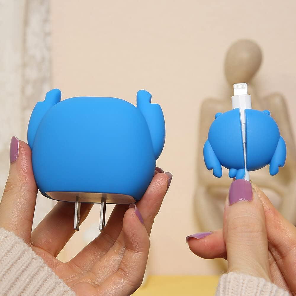 MTYXYTM 3D Cute Cartoon Series Fast Charger Protector for iPhone 18W 20W iPhone 14 13 12 11 Pro Max Fast Charging Cable Charger Head Cover Cable Accessory Data Cable Protective Sleeve, No.17(4in1)