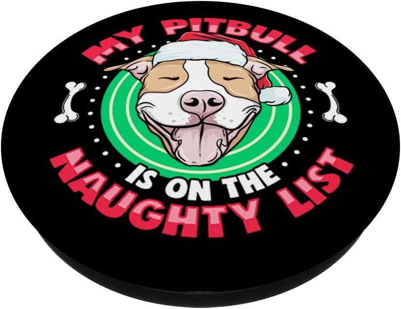 My Pitbullon the Naughty List Funny Christmas Pitbull Dogs PopSockets Grip and Stand for Phones and Tablets