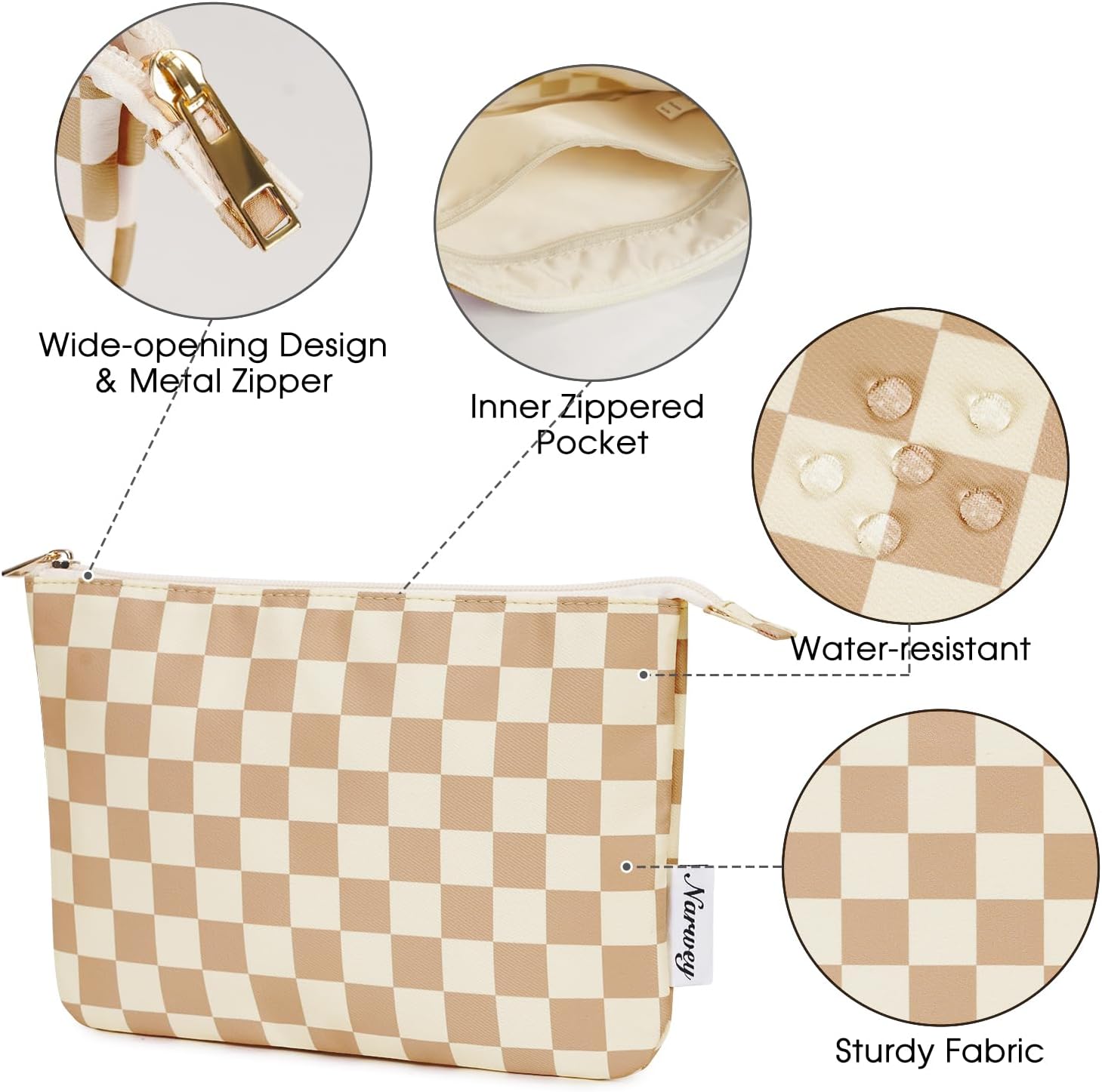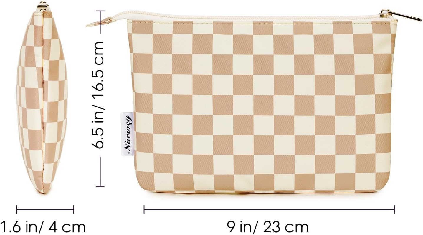 Narwey Small Makeup Bag for Purse Travel Makeup Pouch Cosmetic Bag Zipper Pouch Bags for Women (Light Checkerboard)