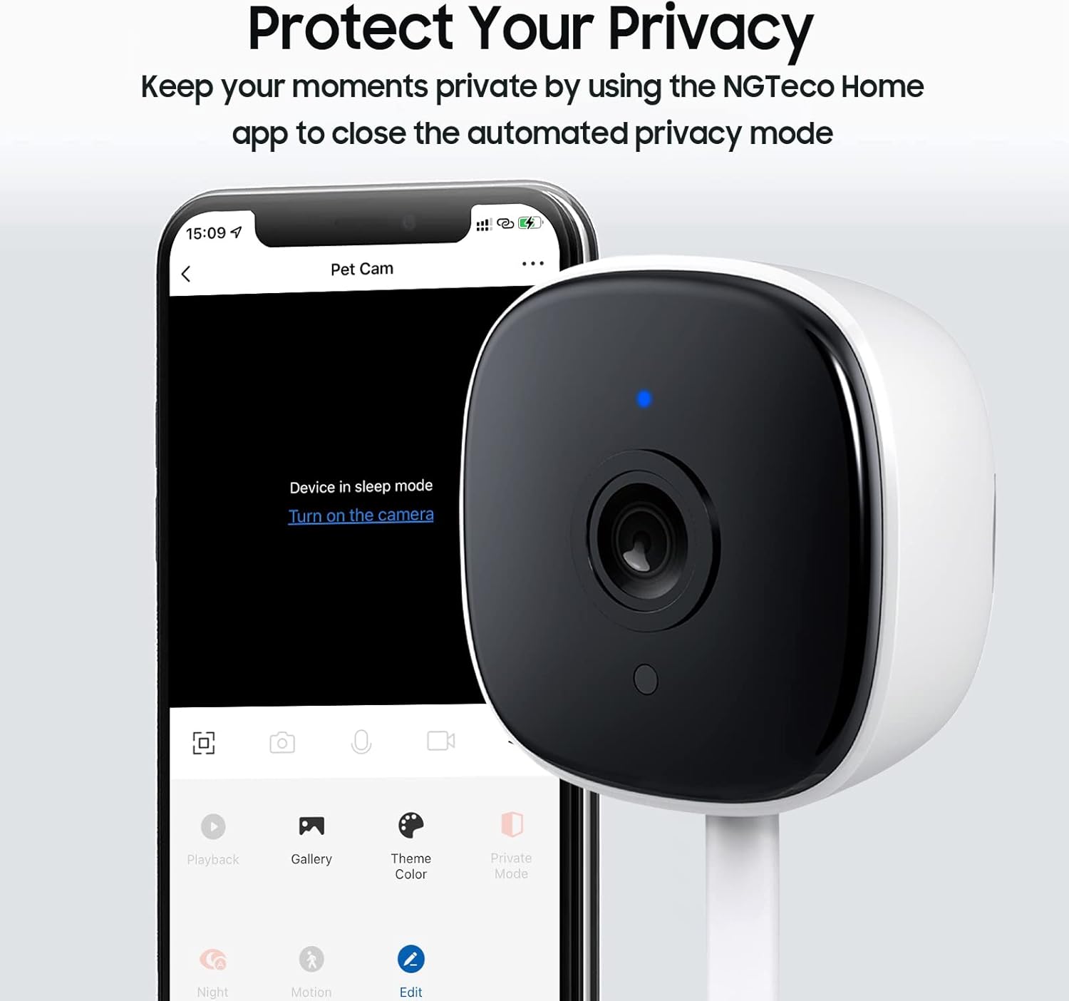 NGTeco Pet Camera – 2K Indoor Security Camera, Home Cam with Motion Detection, Night Vision, Privacy Shield for Dog, Cat, Baby, Plug-in 3MP HD Small WiFi Cam Compatible with Alexa, Google