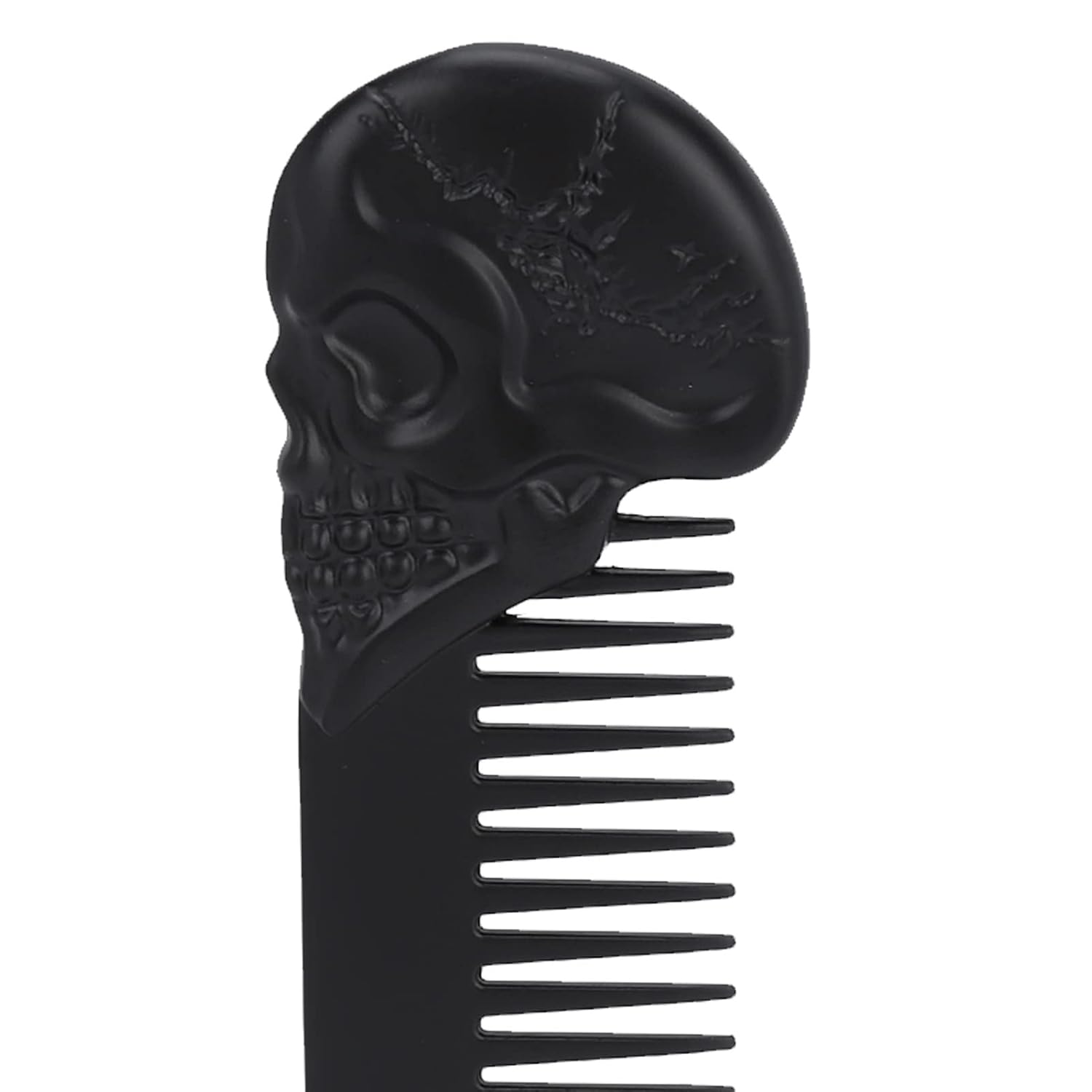 Oil Skull Pattern Zinc Alloy Comb – Pocket-Size Styling Tool for Head Hair or Beard, Suitable for Home and Salon (Black)