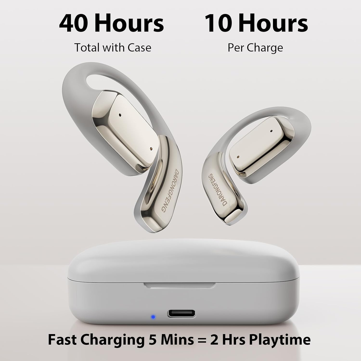 【Extended Battery Life & Convenient LED Display】Extended battery life and convenient LED display allow you to easily check the remaining power of both earbuds and the charging case. 40 Hrs of playtime lets you enjoy music without any battery anxiety