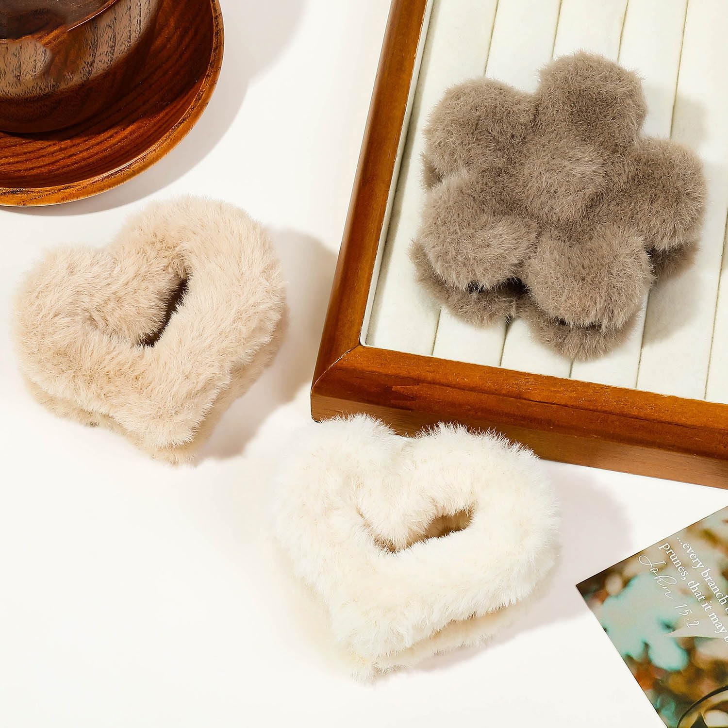 OUDEKE 4PCS Hairy Flowers Hearts Shaped Winter Warm Hair Claws Hair Clips Hair Accessories Hair Supplies for Girls Women Youth Gifts