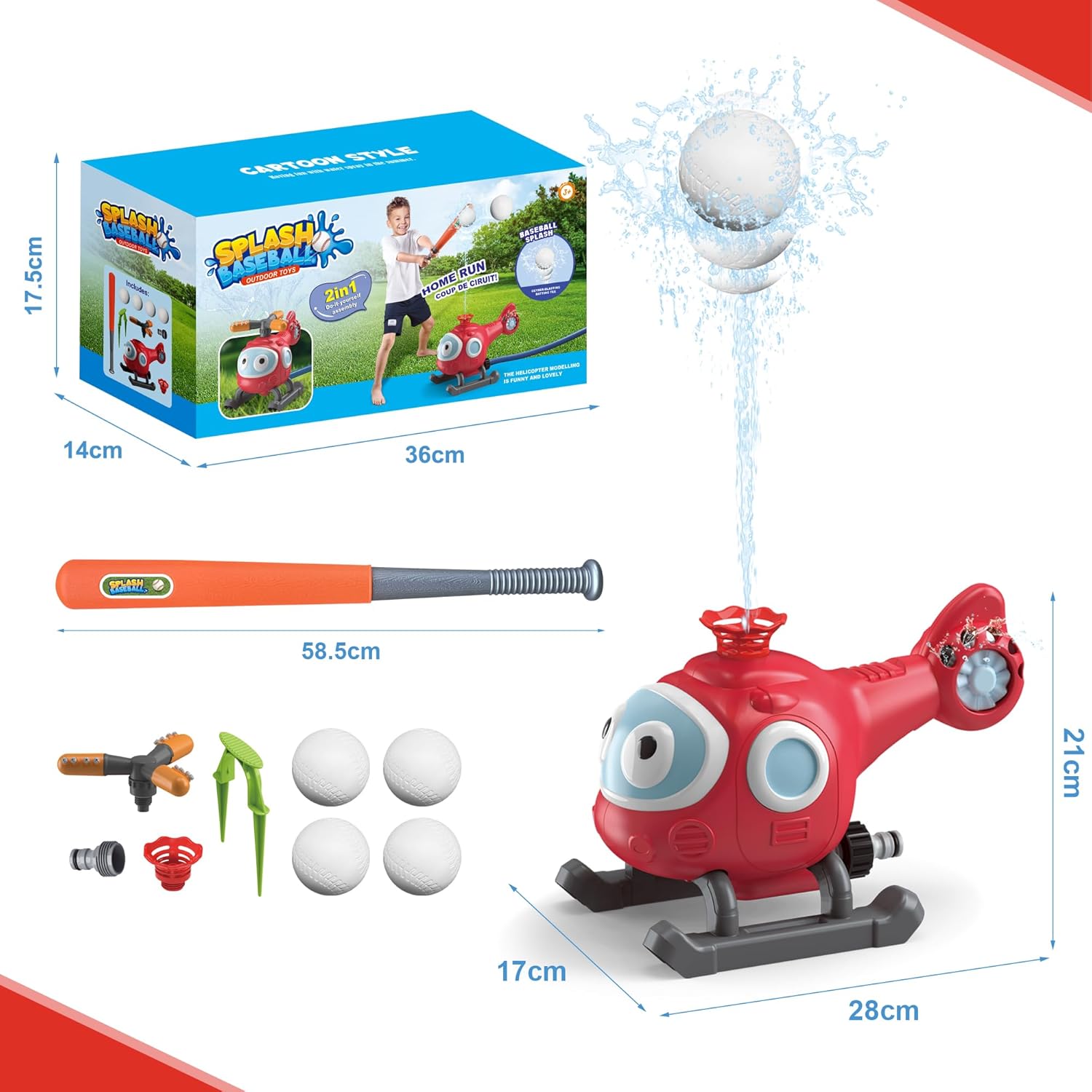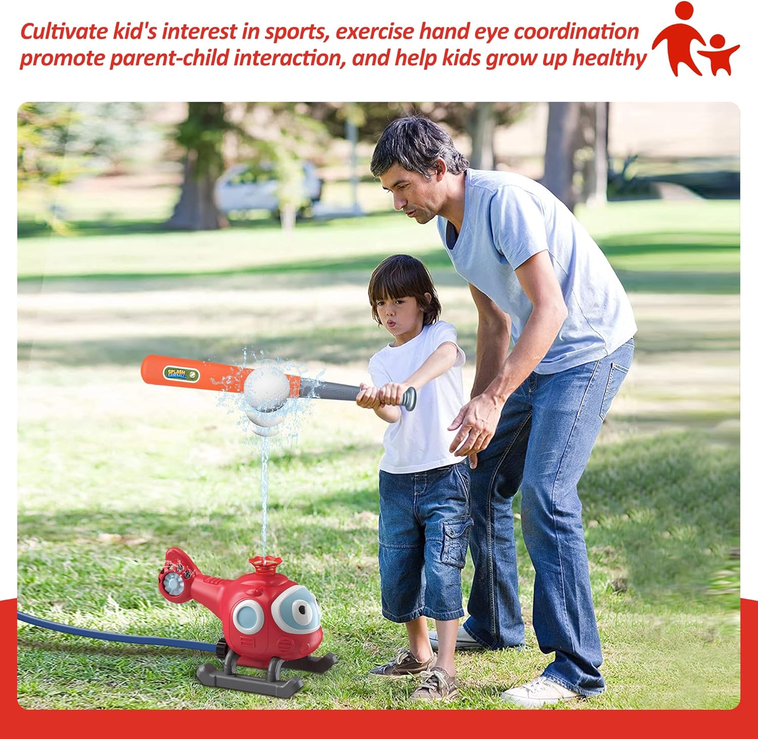 Children can enjoy staying cool and active while improving their hand-eye coordination and motor skills.The water spray sprinklers create a refreshing mist that dances in the air, providing a unique and entertaining way to cool off on hot summer days.Meanwhile, the T-ball set encourages kids to practice their batting skills and aim for the targets.