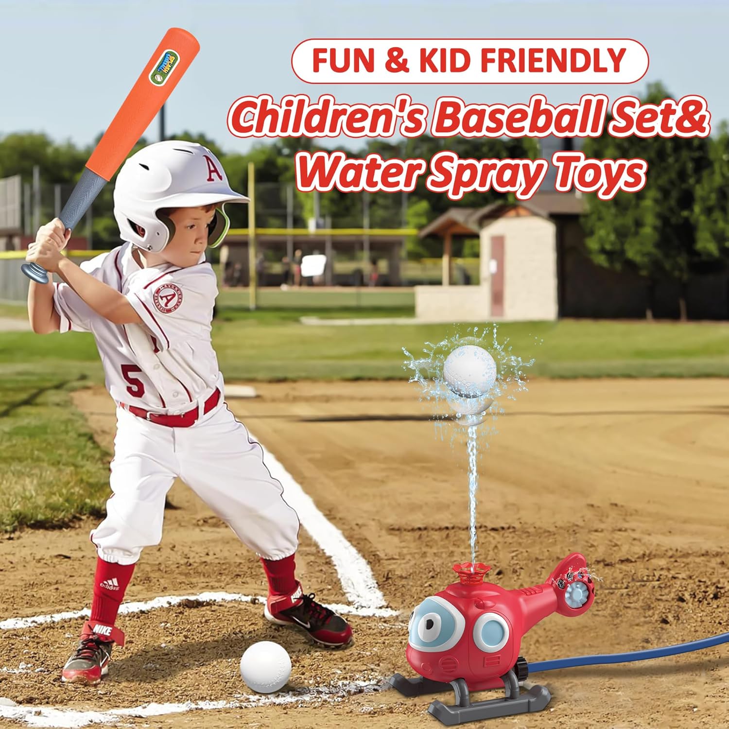 Outdoor Water Sprinklers with 4 T Ball Set for Toddlers Kids Ages 4-8,Summer Outside Sprinklers Play Equipment Baseball Game Lawn Yard Tee Ball Game for Boys Girls,Hose Connector Included