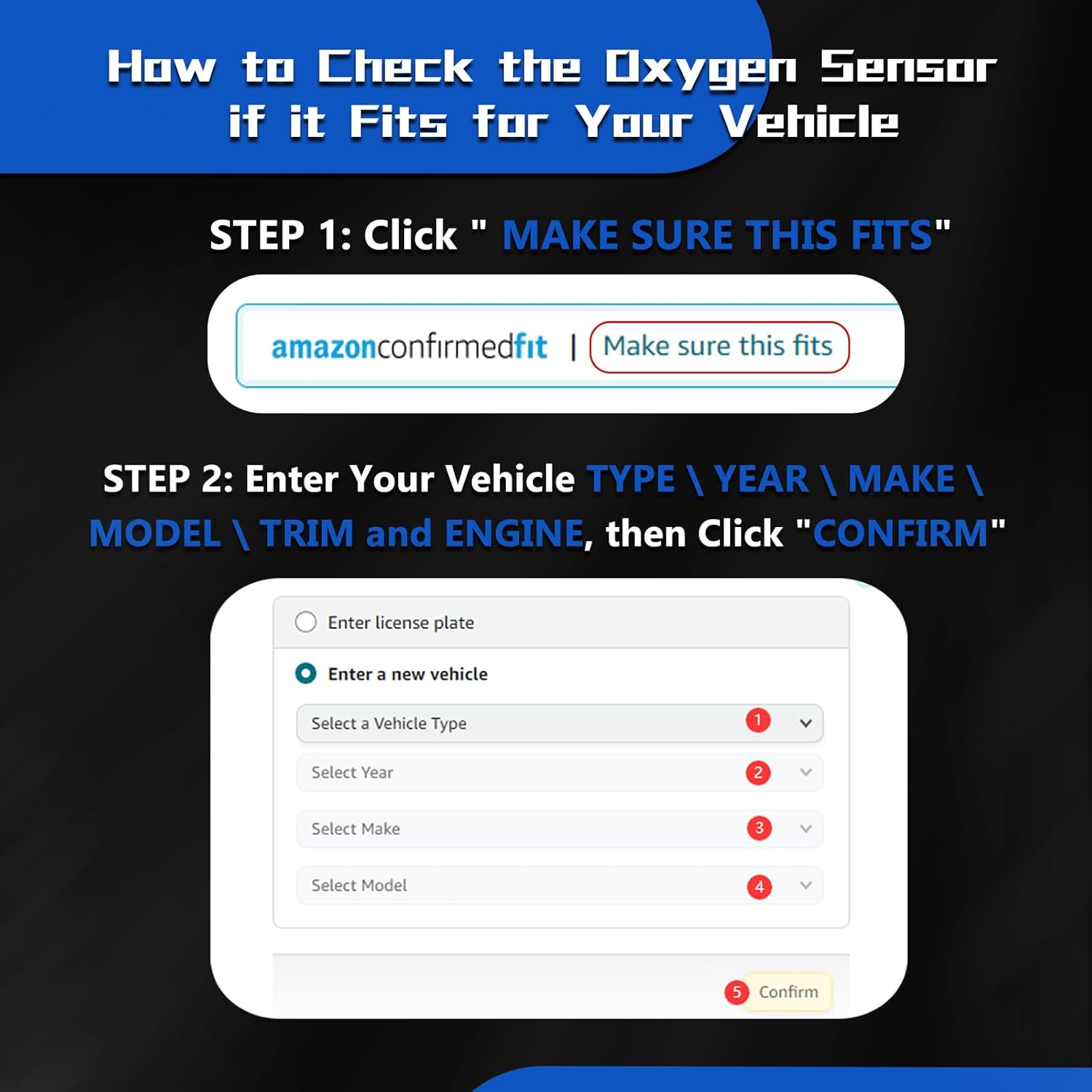 【Attention】: Please carefully check that your original oxygen sensor is the same as the image we show, and confirm that the parts number is the same as the OEM number we provided to ensure that the product is fits for your vehicle.