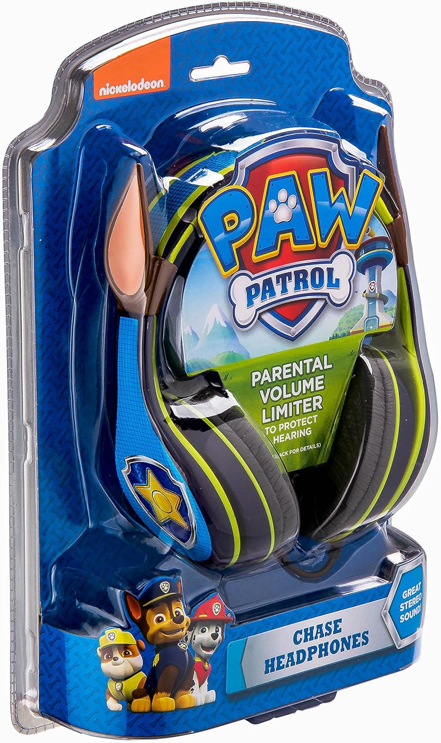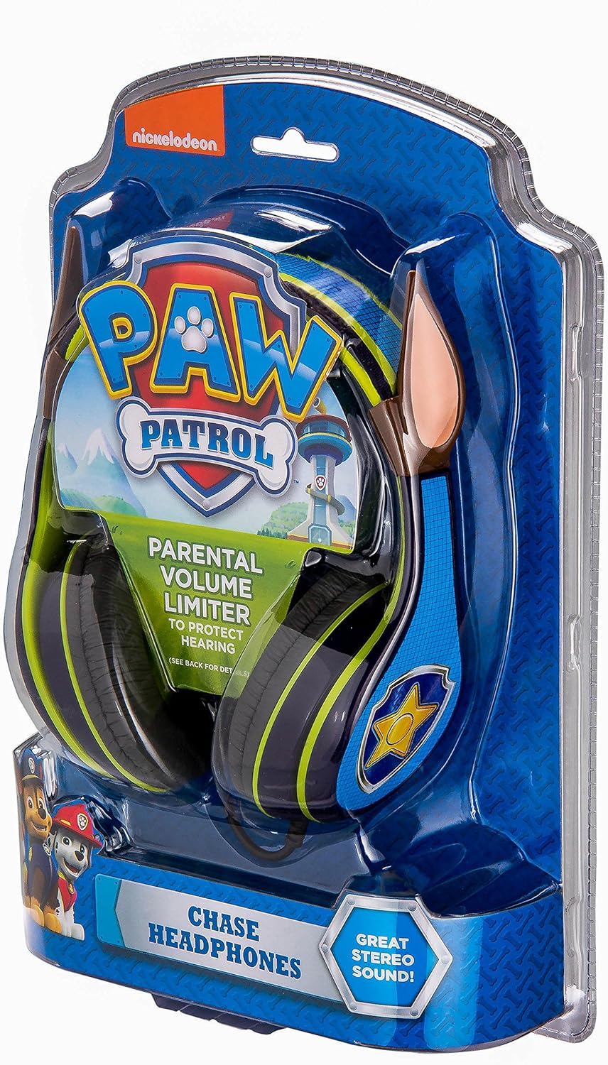 Paw Patrol Design: Over ear headphones feature cool graphics inspired by the popular show. Chase’s ears will look great on any little pup!