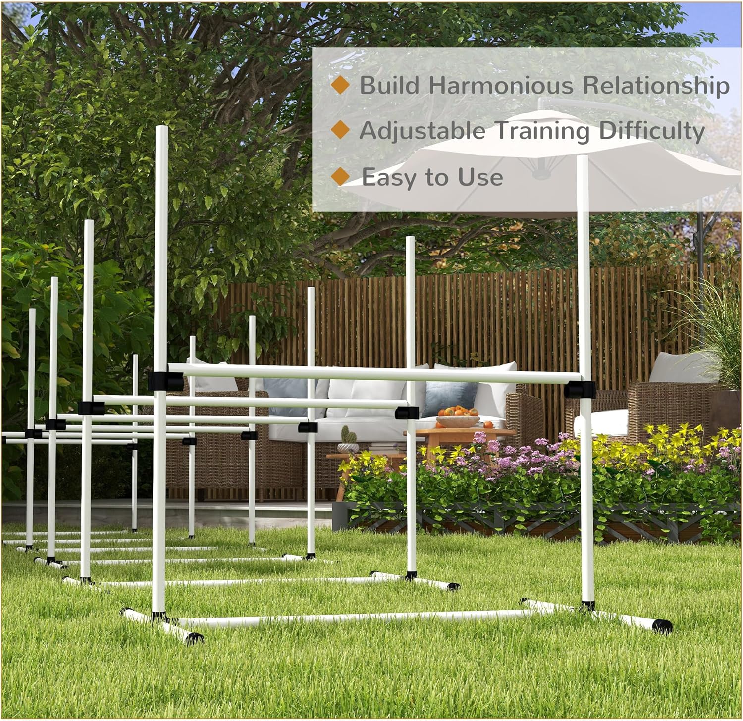 PawHut 6 Piece Dog Agility Training Equipment for Dog Agility Course with Adjustable Height Jump Bars, Included Carry Bag, & Displacing Top Bar, White