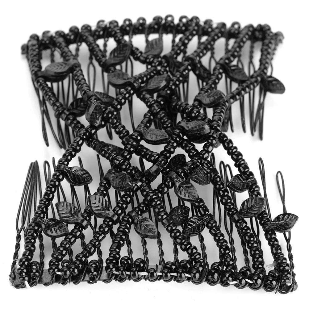 Pearl Hair Clips and Combs Set – Elastic Stretch Double Clips, Magic Combs, DIY Hair Styling Tool (Black)