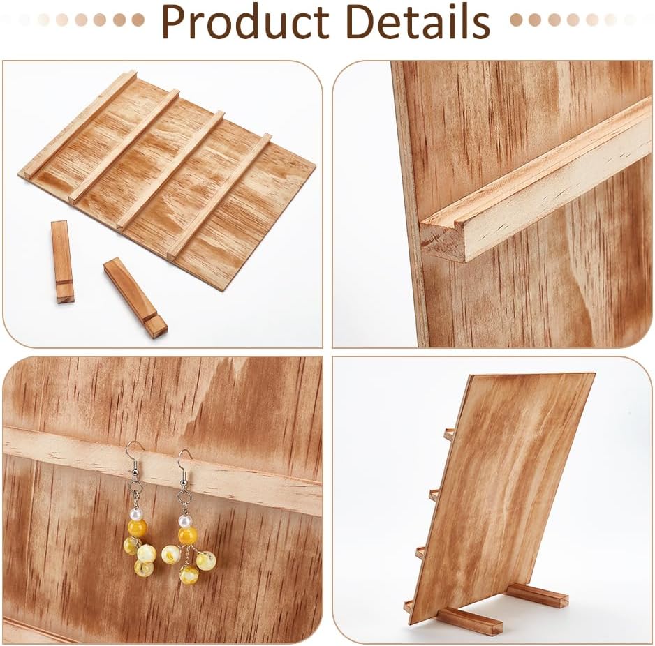 PH PandaHall 4 Tier Wooden Jewelry Display Stand, Earring Display Stands Rack Removable Showcase Rack, Retail Jewelry Display Card Holder for Selling Craft Jewelry Showing