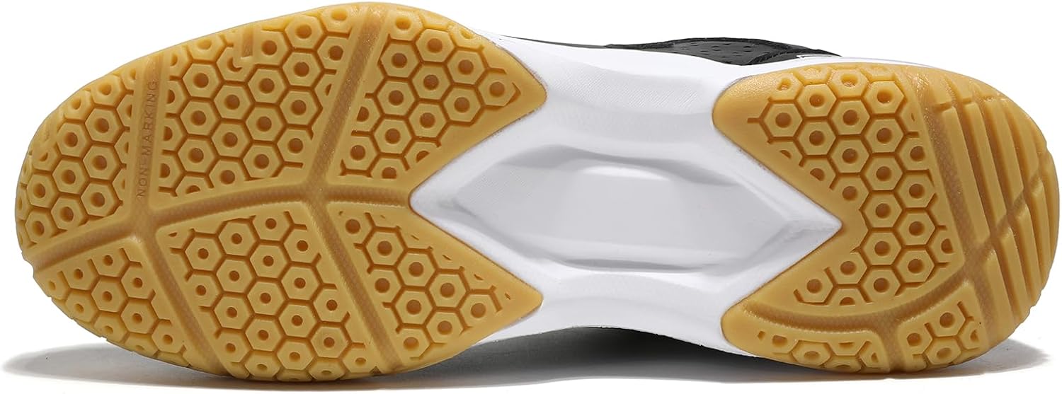 Customers like the slip resistance, comfort, and fit of the shoes. For example, they mention the non-marking rubber outsole grips the court nicely, the internal heel counter adds some extra stability, and the shoes are very supportive. They also appreciate the snug, secure fit and the fact that they provide enough space for their toes to stretch out.