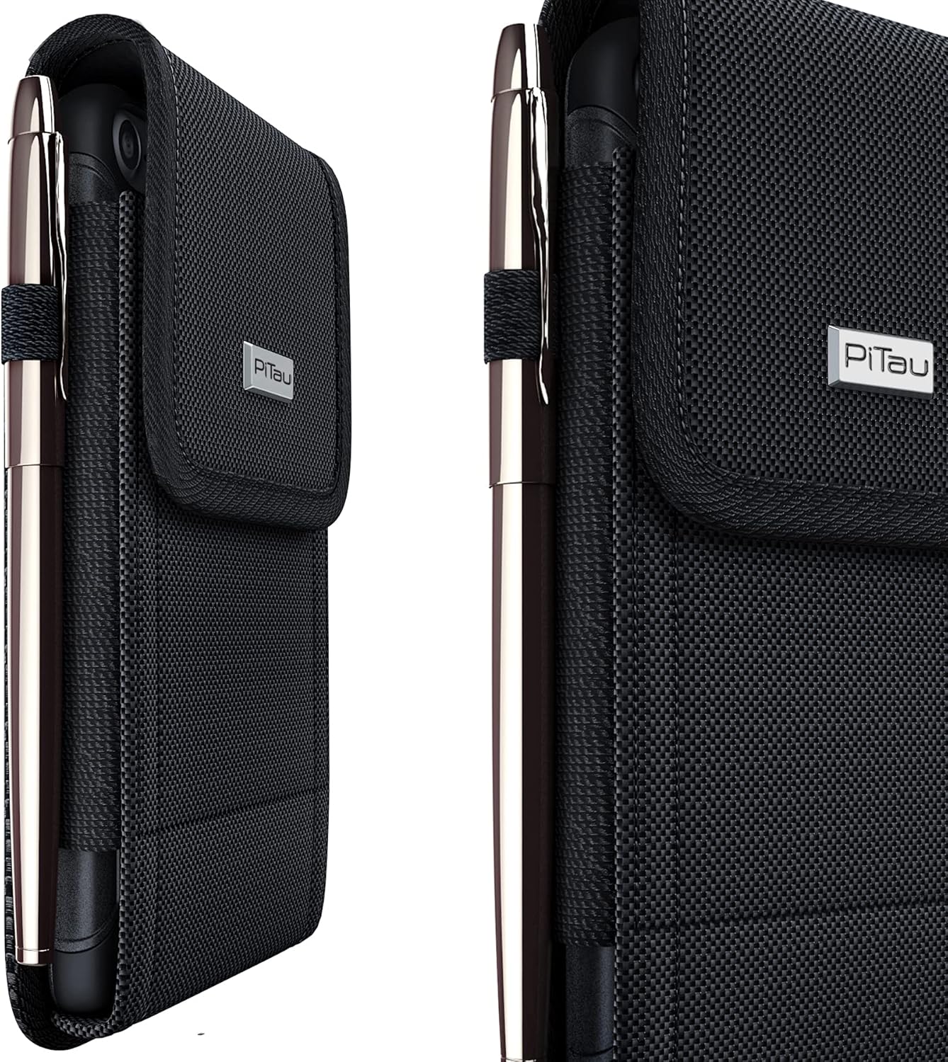 Large Size PiTau holster designed for Galaxy S23+ Plus, 22+ Plus, S21+ S20+ S10+ S9+ Plus A20 A50 A51 A52 A53 phone models with protective cases on.