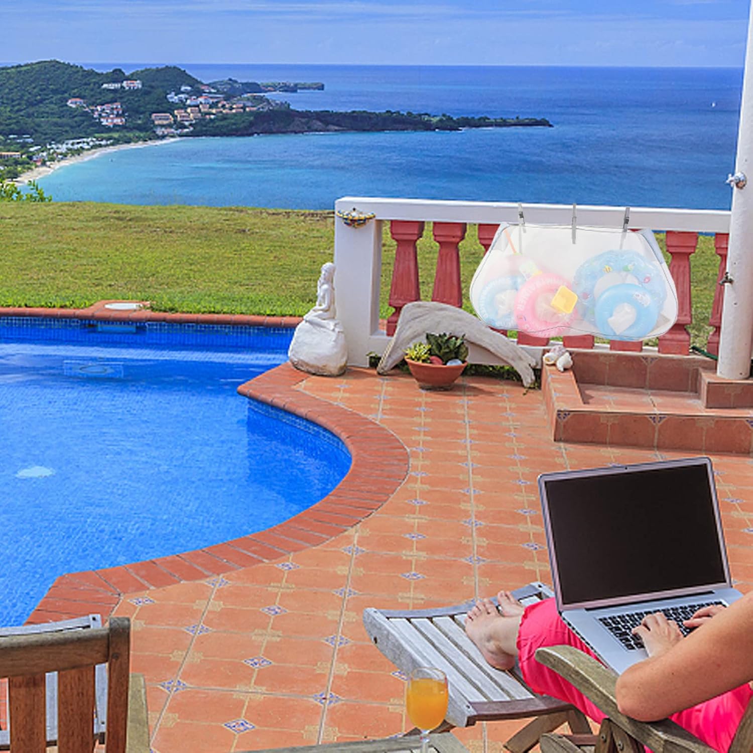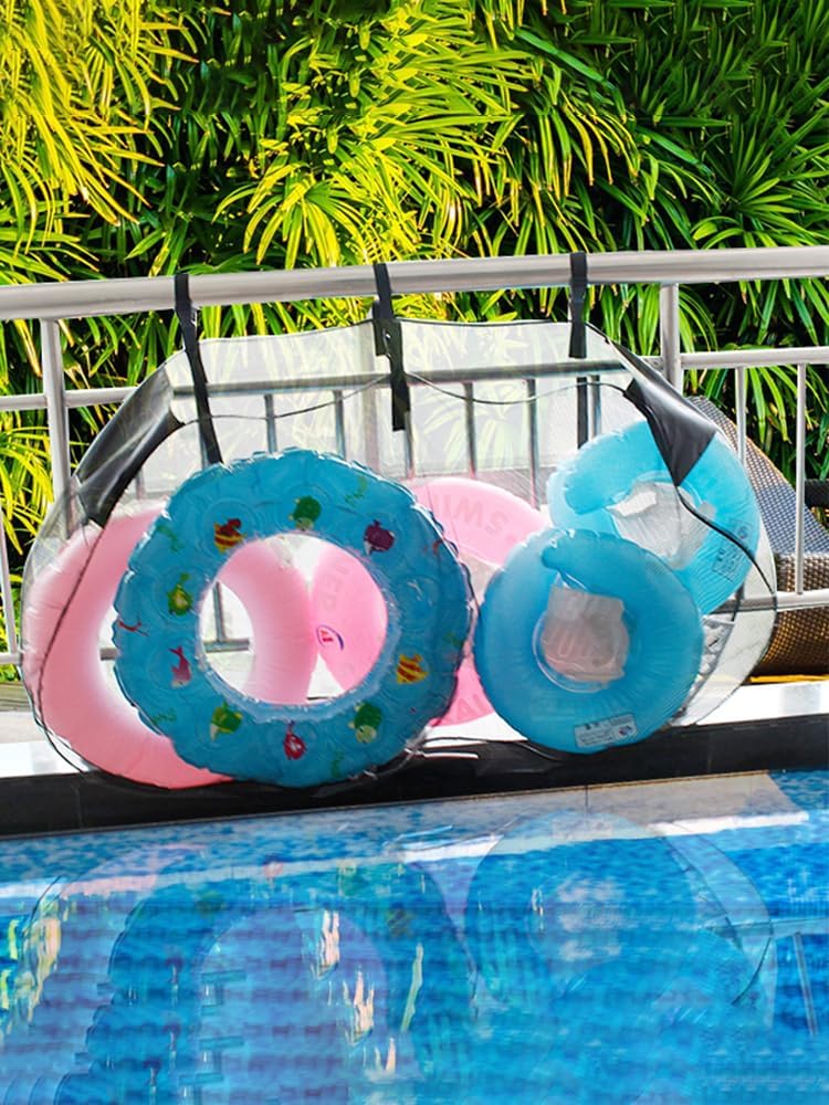 Pool Float Toy Storage Mesh Bag Large Capacity Swimming Pool Storage Bag Guardrail Net Hanging Bag Adjust Strap Swimming Rings Storage Mesh Bag for Outdoor (#1 gray)