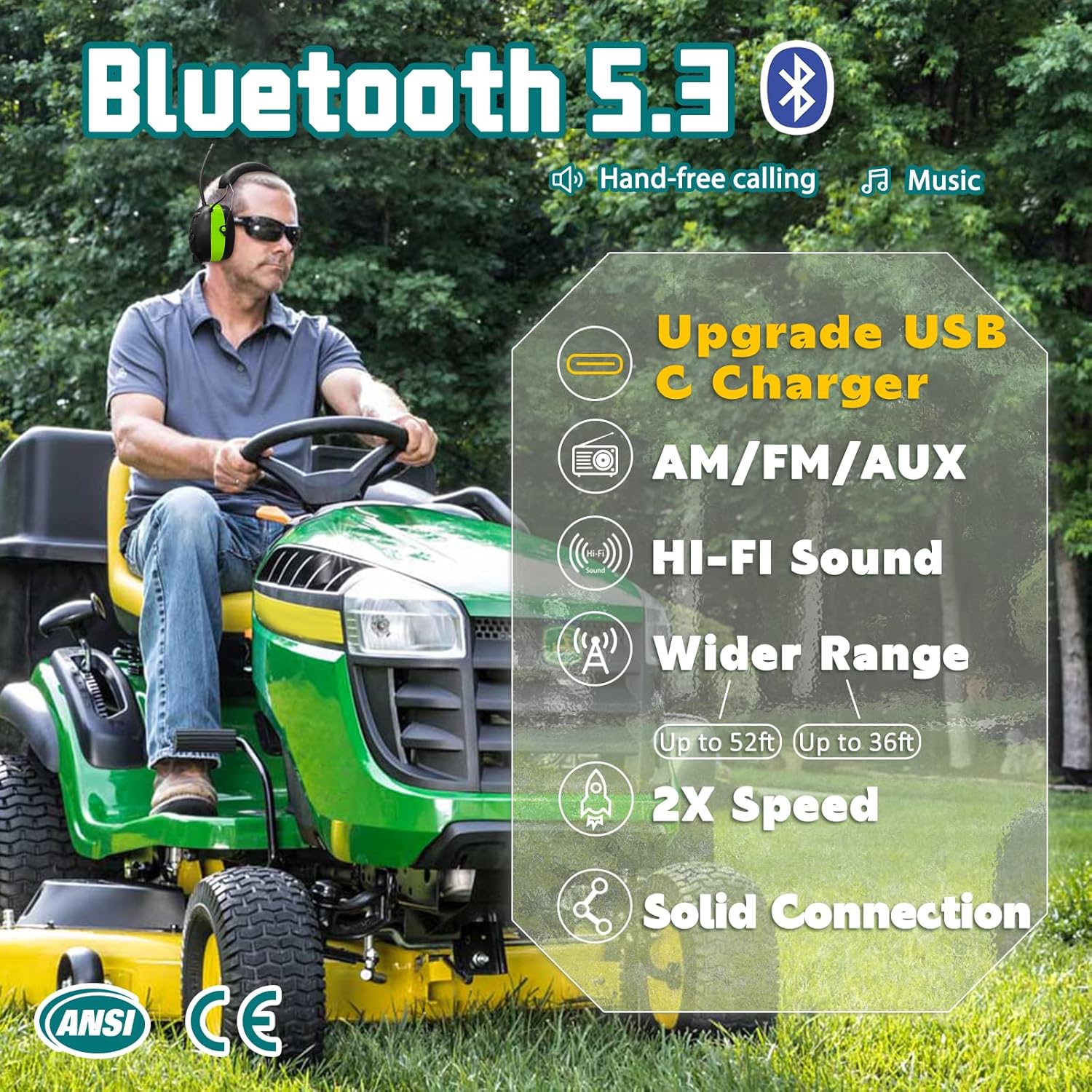 PROHEAR 033 2Pack Upgraded 5.3 Bluetooth Hearing Protection AM FM Radio Headphones, Noise Reduction Safety Earmuffs with Rechargeable 2000 mAH Battery, Ear Protector for Mowing Lawn Work, 2Green
