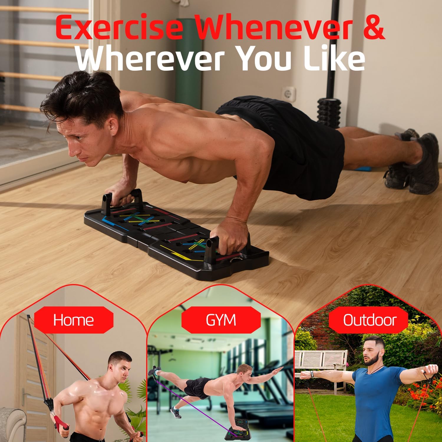 Push Up Board – Portable, foldable & space saving – Lose fat & Gain muscles – Target full body, Comfort rubber handles, Sturdy & non-slippery – Gym equipment for home, office, park – At home workout equipment, Calisthenics equipment