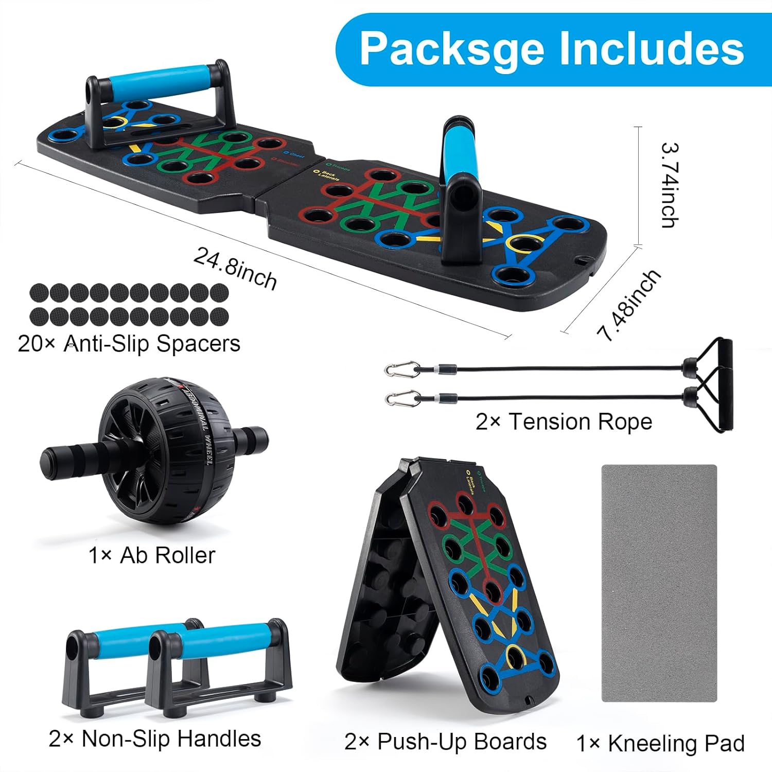 Enhanced Fitness Equipment: The push up board comes with tension ropes and an Ab roller, allowing you to increase resistance for more challenging exercises or customize intensity based on your fitness level. Target multiple muscle groups, improve core strength, and enhance overall endurance with this all-in-one workout set.