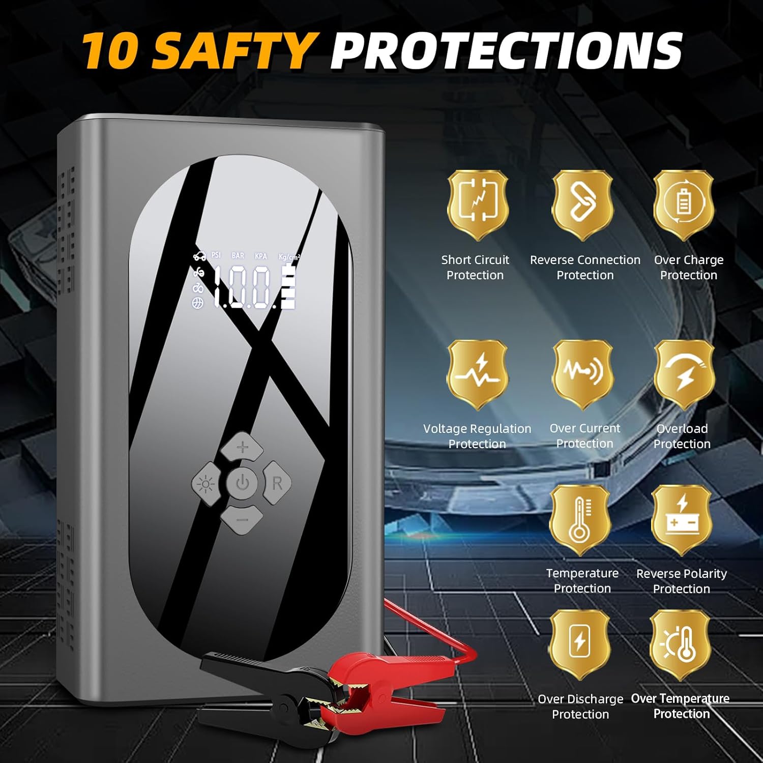 Q12 4500A 150PSI Jump Starter with Air Compressor, Jump Starter Battery Pack (Up to 12.0L Gas/10.0L Diesel), with Large Display, 3 Modes Flashlight and Jumper Cable