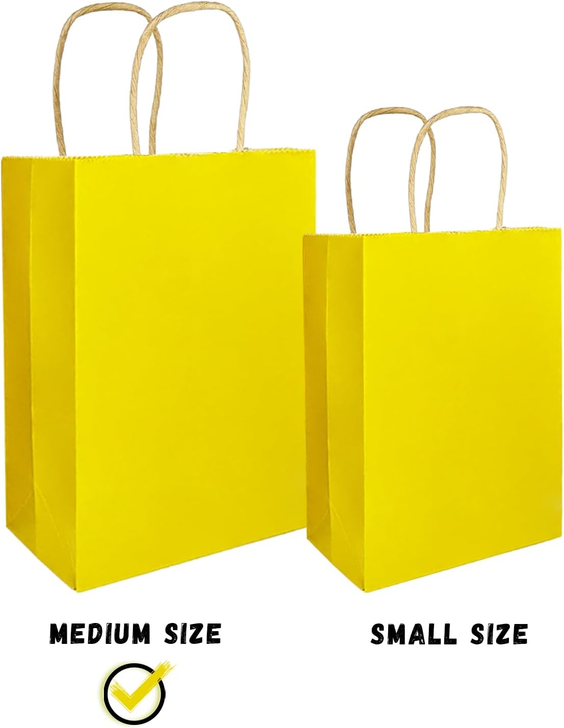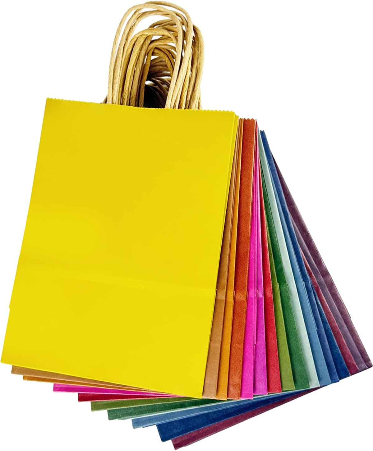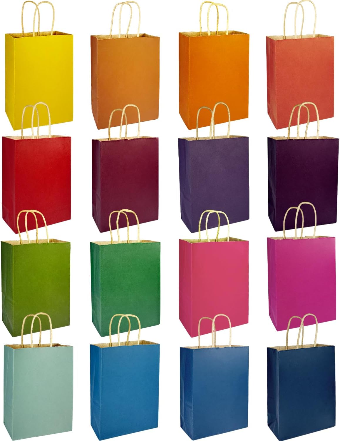 qiqee 32-Packs Paper Bags with Handles Bulk 7.6″x4.75″x10.5″ Medium Gift Bags 16 Different Senior Color Bags Multiple Uses(Medium Size)