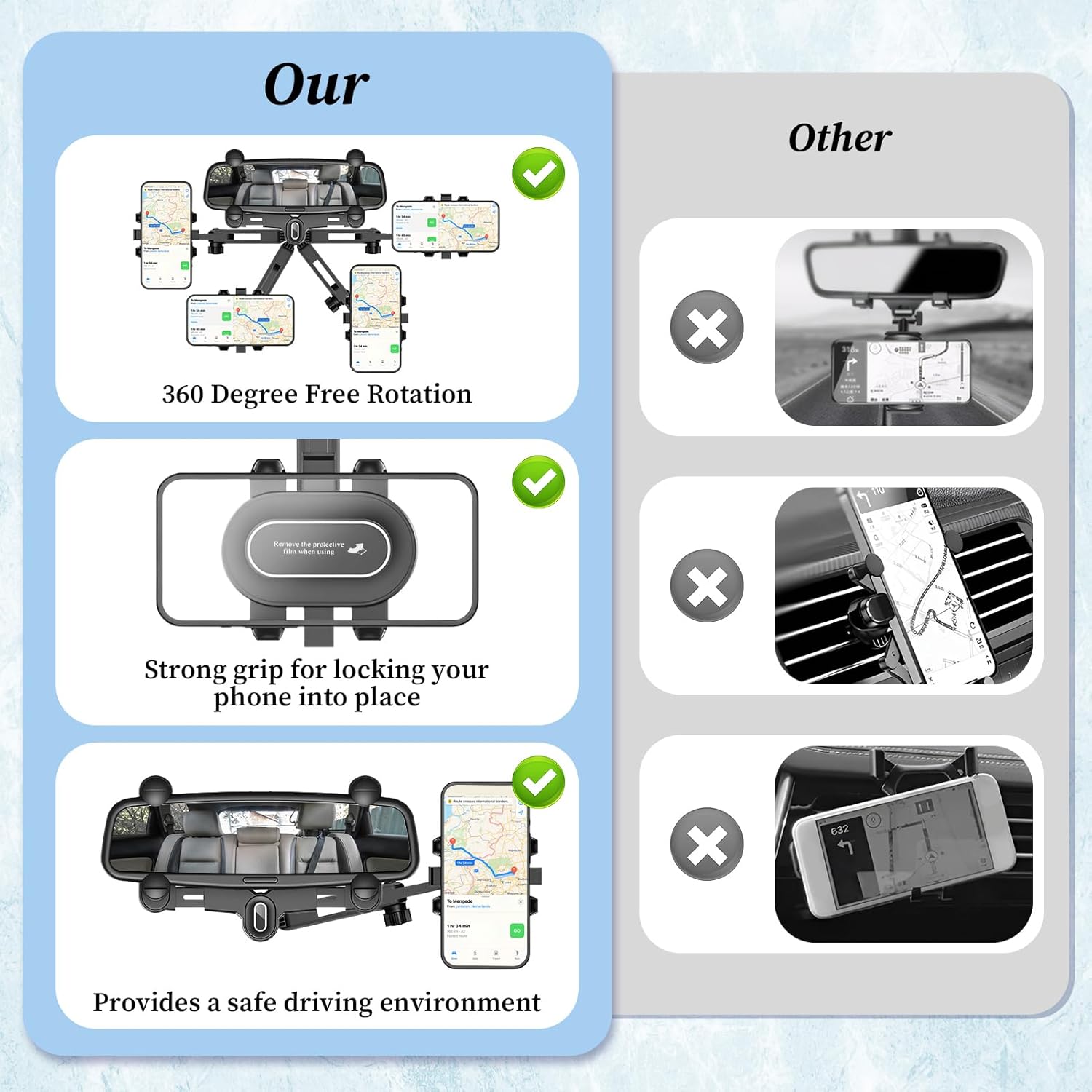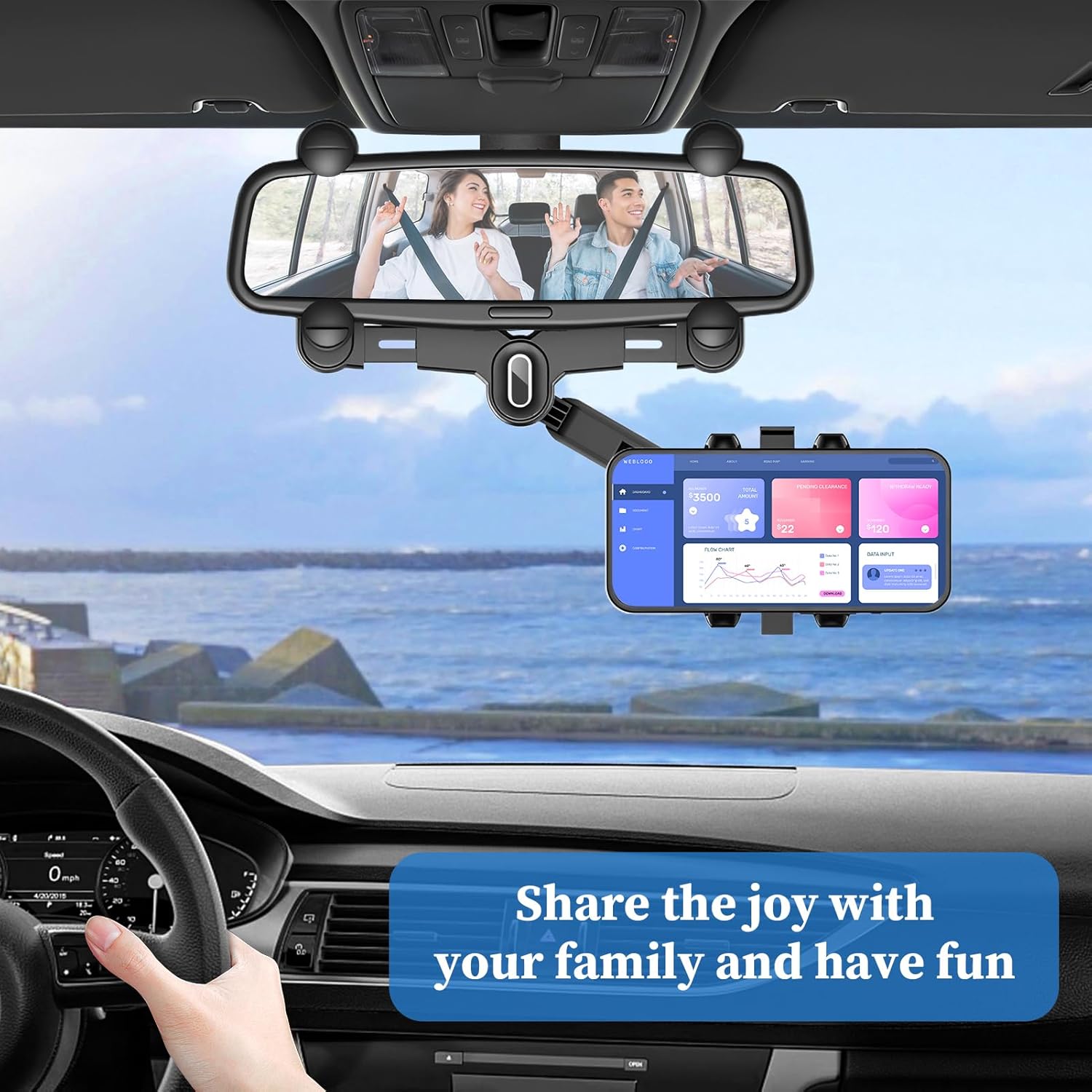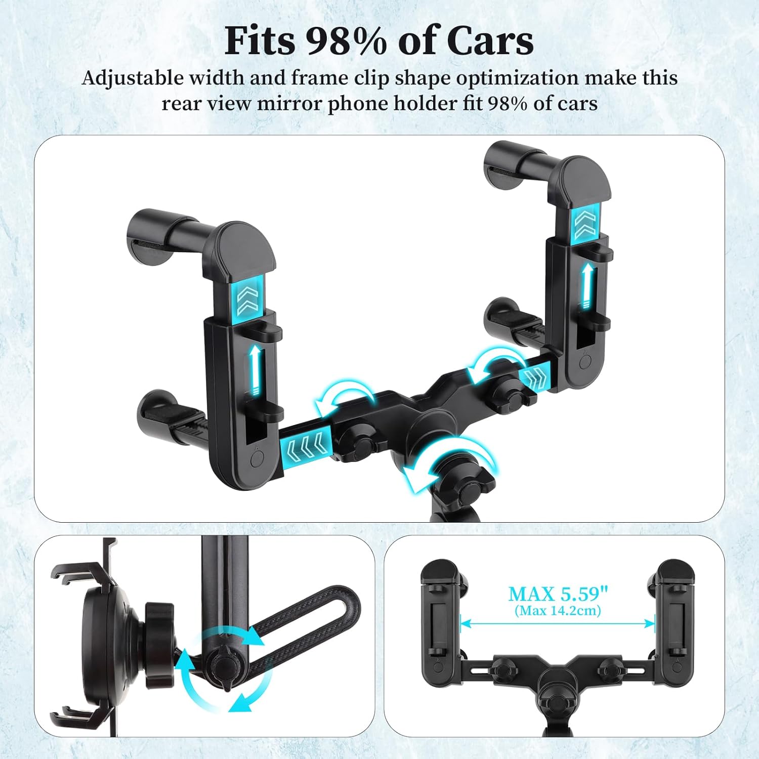 Rearview Mirror Phone Holder for Car – Adjustable Multifunctional 360°Rotatable and Retractable Bracket for Car Rear View Mirror Mount Holders
