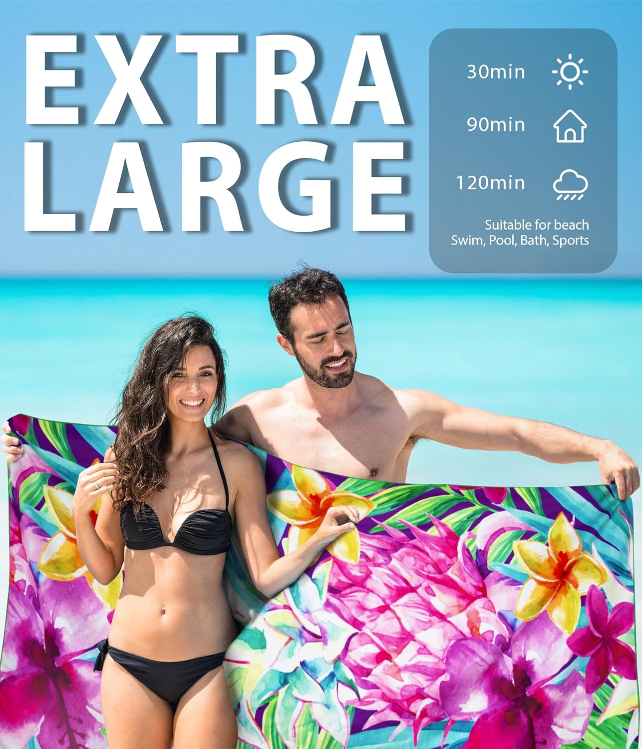 Sand Free Microfiber Beach Towel – Quick Dry Lightweight Oversized Large Towel Accessories Travel Swim Pool Yoga Cruise Camping Gear Packable Resistant Gift Fragrant 71″ 32″