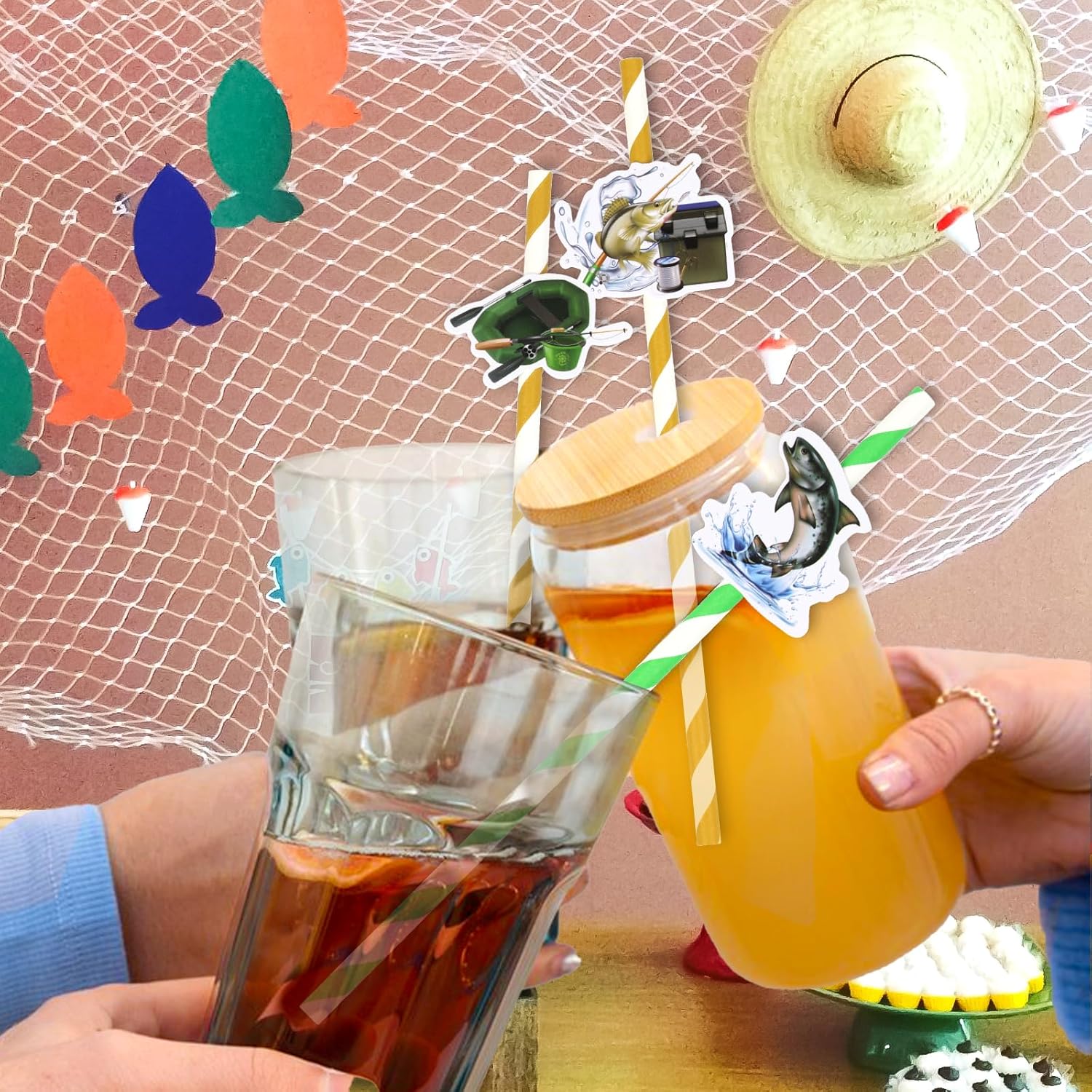 Fishing Element: Brown and green striped paper straws are designed with fish or fishing equipment toppers, which are very cute to decorate your birthday party, adding funny and cute festival atmosphere, attracting your guest’s attention