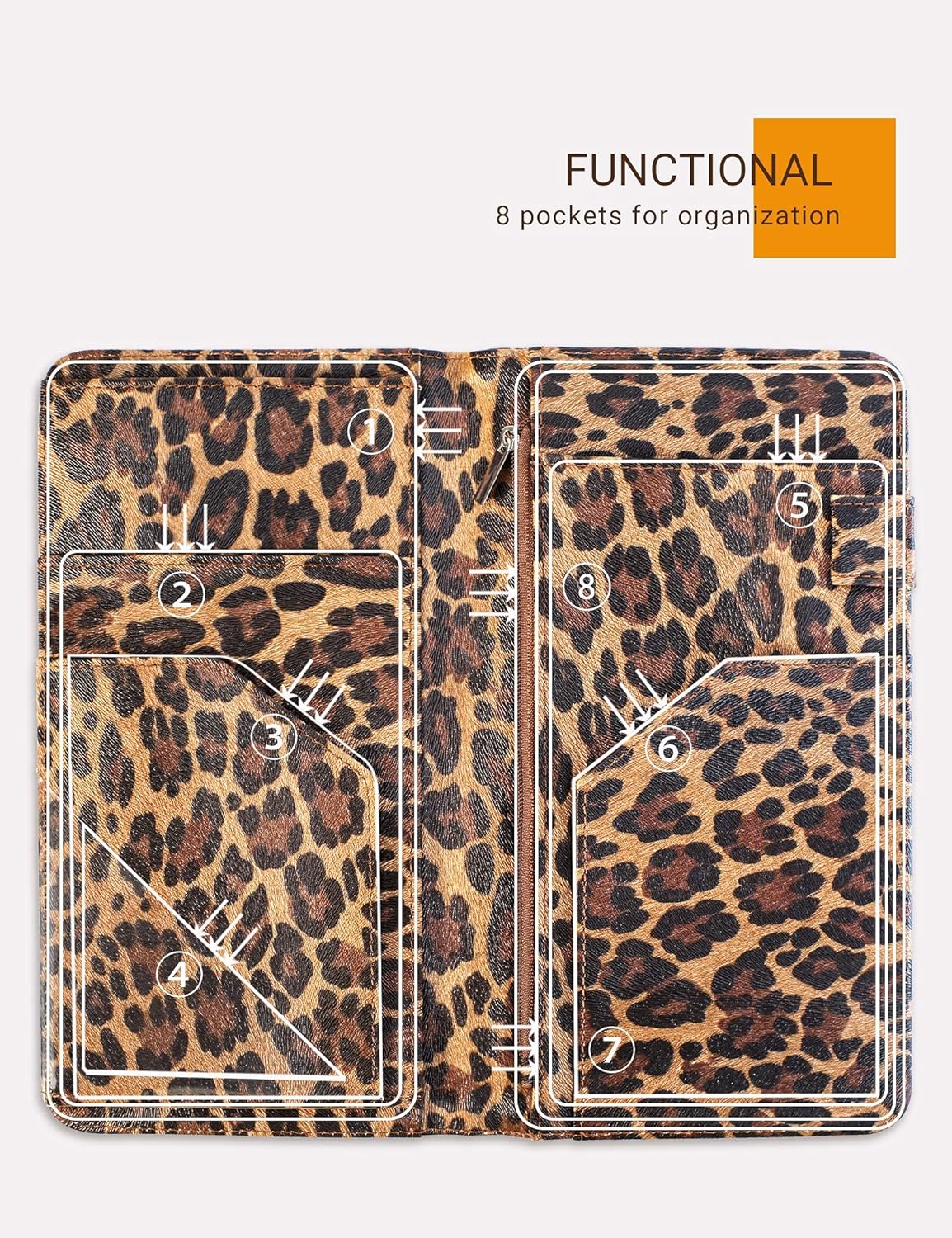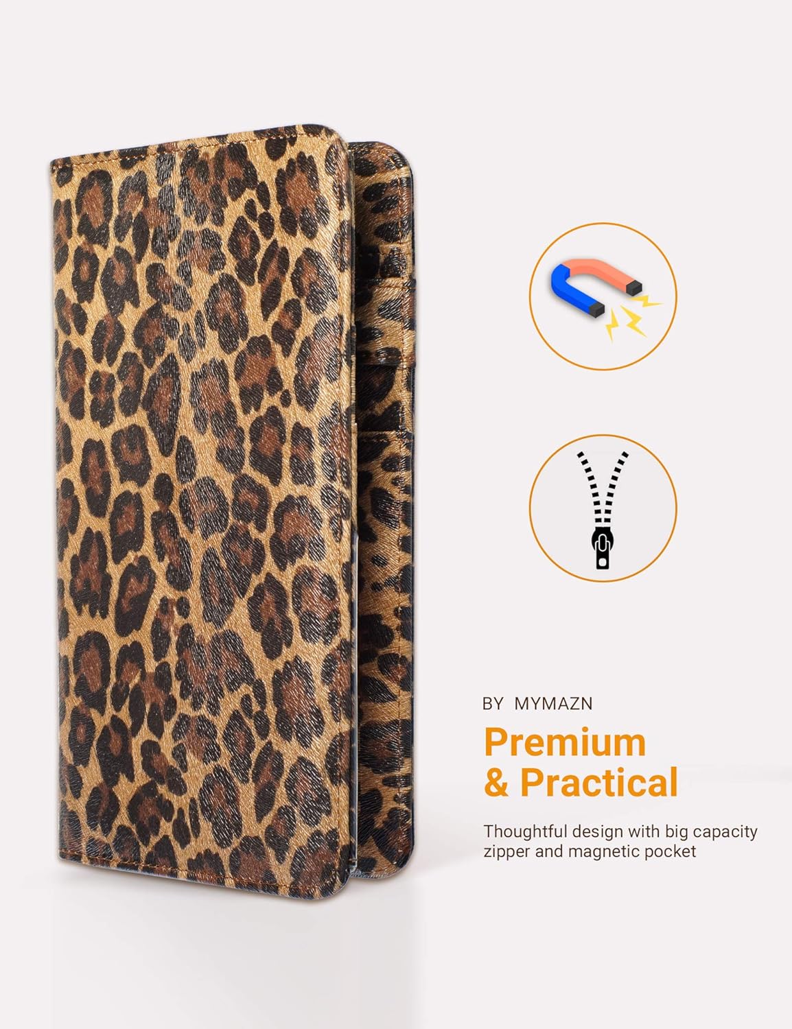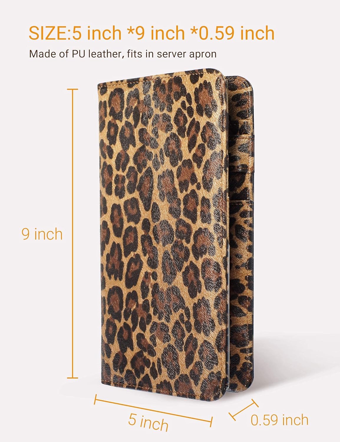 Server Book for Waitress Book with Zipper Pocket, 5×9 Leopard Magnetic Closure Server Wallet with Money Pocket and Zipper Pouch, Restaurant Waitstaff Organizer Fit Server Apron