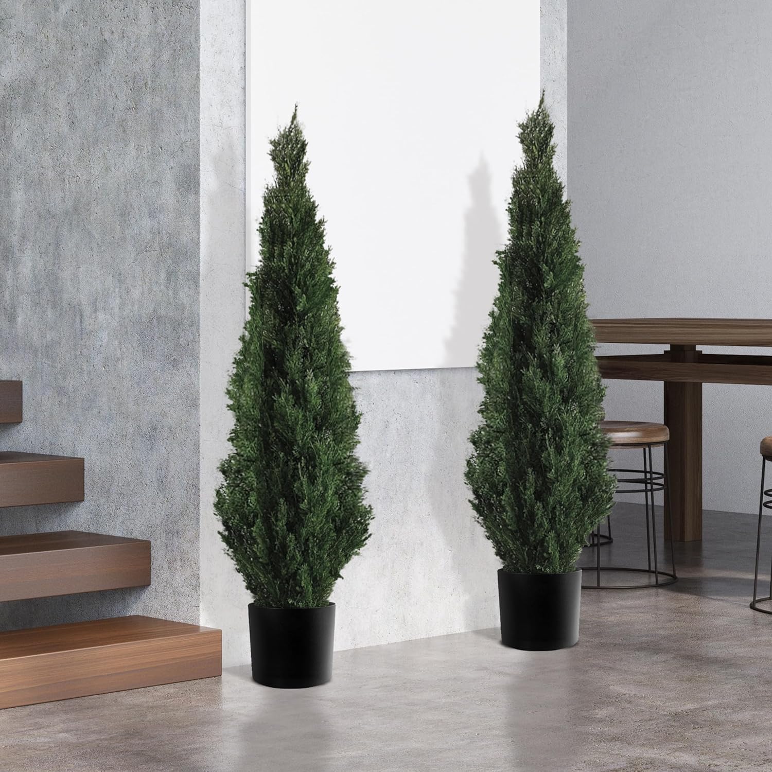 4 Feet Faux Cedar Tree: Perfectly suited as both door side and front porch decor, our outdoor topiary (set of 2) transforms any entryway with their timeless beauty.