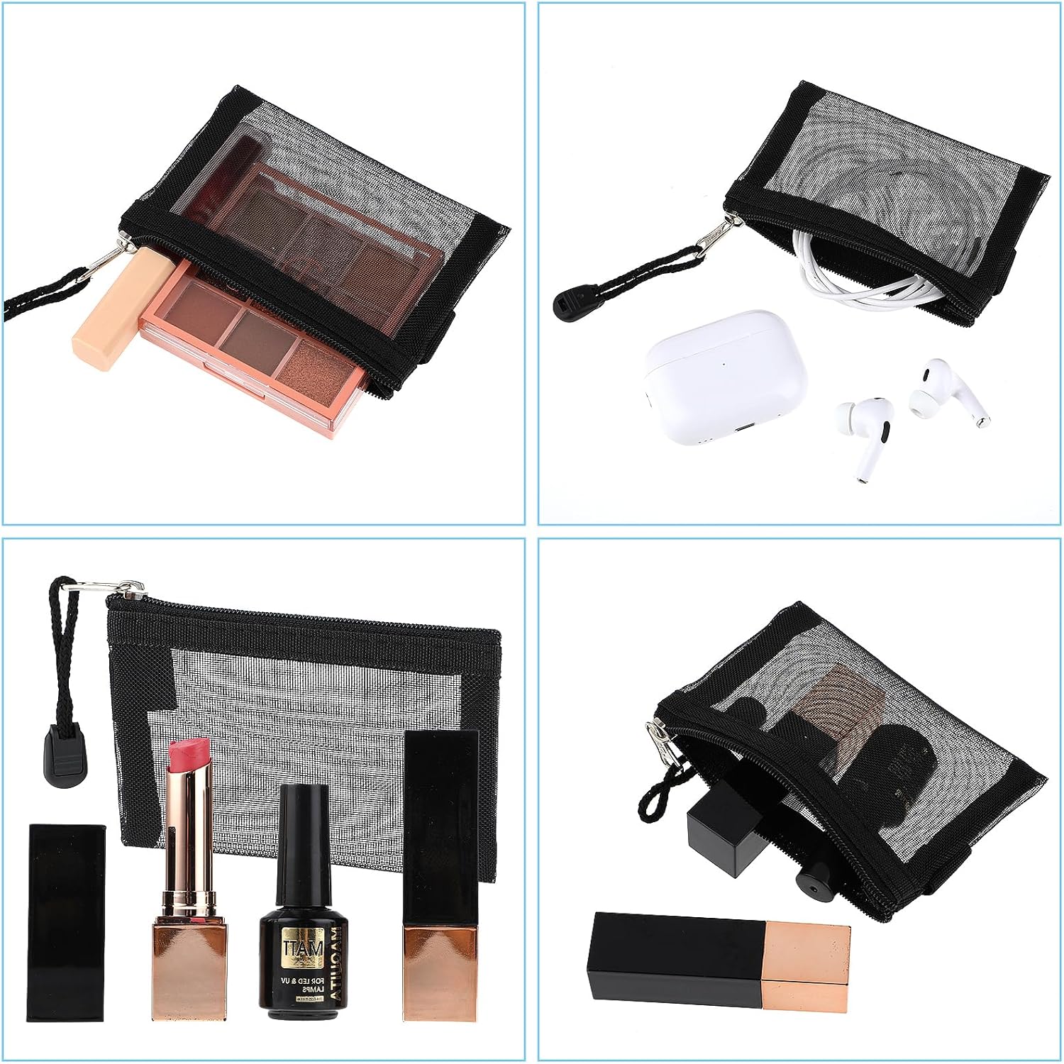 Car Organization Makeup Pouch:Cosmetic bag purse accessories is made of mesh nylon and features zipper lock storage areas. Cosmetic storage of eye shadows, makeup brushes,lipsticks and earFFs,stationery storage such as pencils, erasers, pens, and stamps