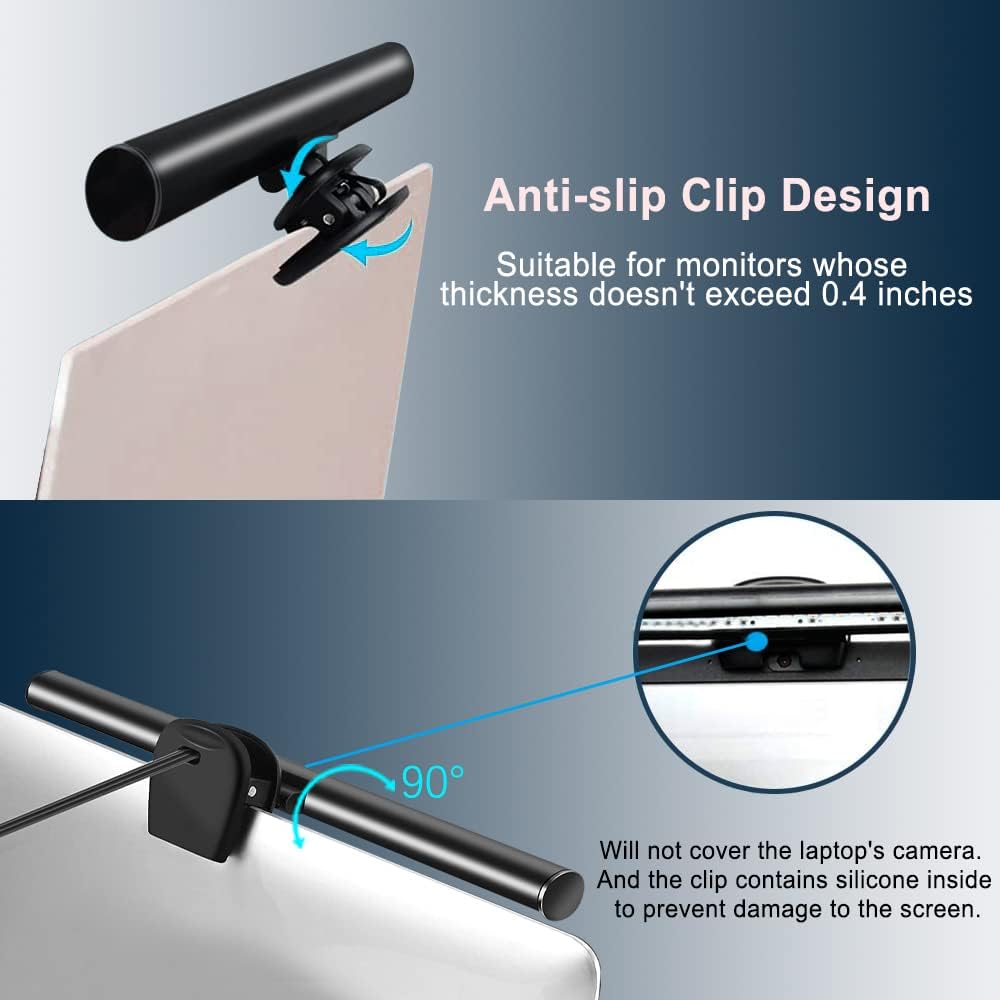 🌟Easy to Install: Specially designed for laptop, clip-on design, you just need to clamp it on the top of the laptop screen edge, and it will work for you. This monitor lamp is suitable for the thickness of the screen between 0.3cm to 1cm, not suitable for desktop PC or TV.