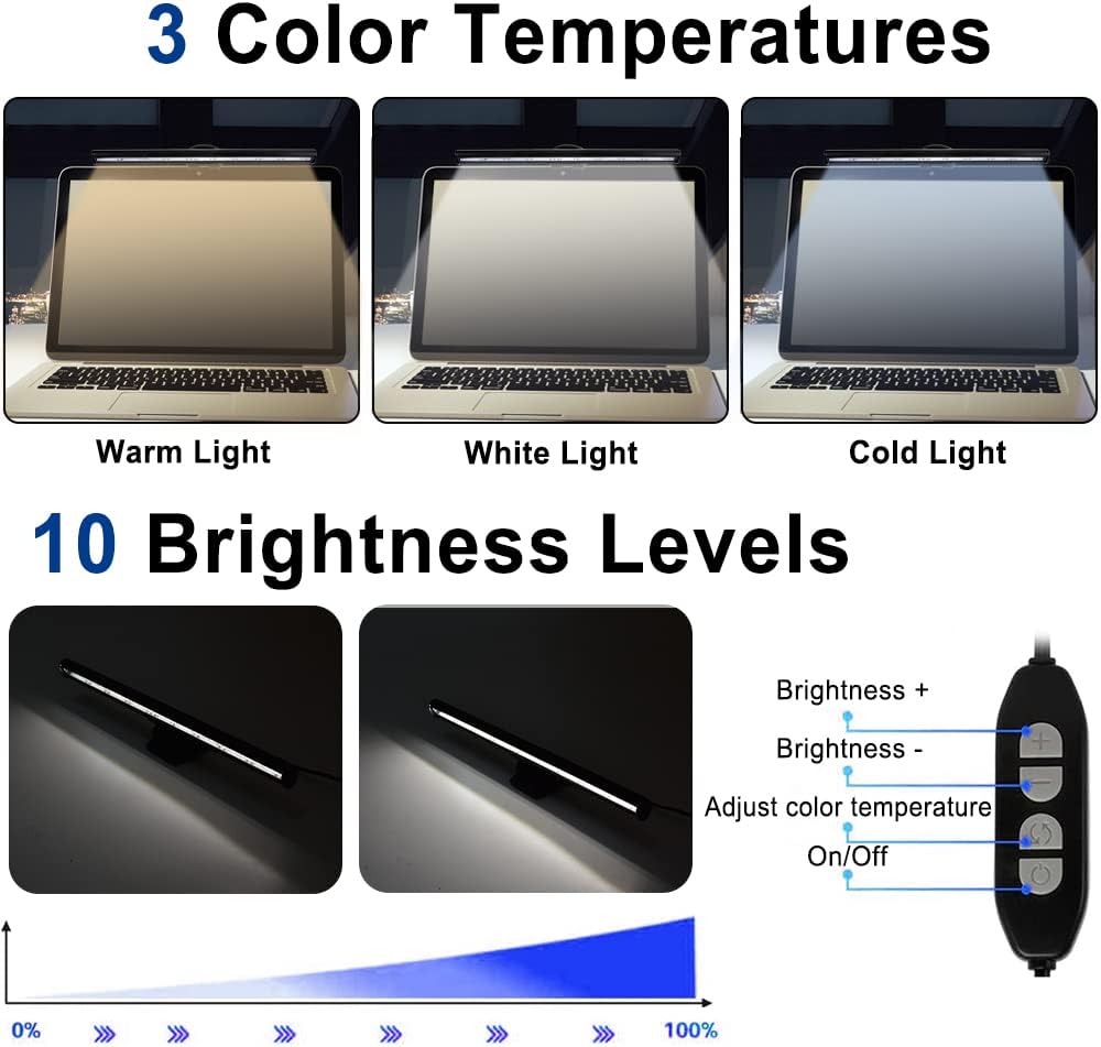 🌟Save Desk Space: The screen light sits safely on the top of your laptop screen without covering the camera, no light base or arm, it saves valuable desk space effectively. Slim and stylish design makes your workspace look more modern.
