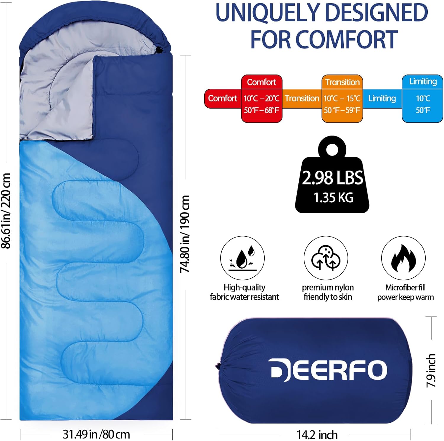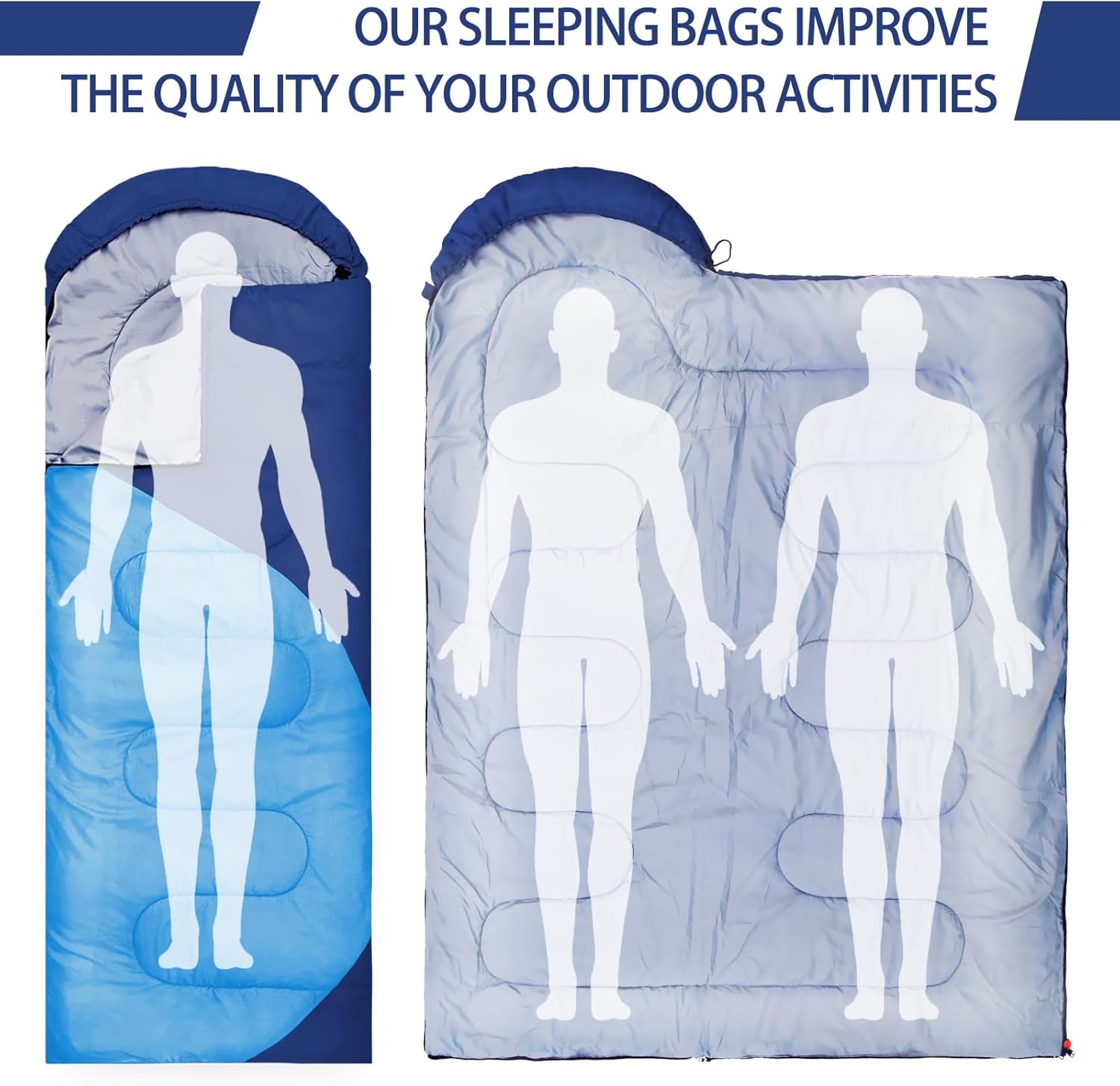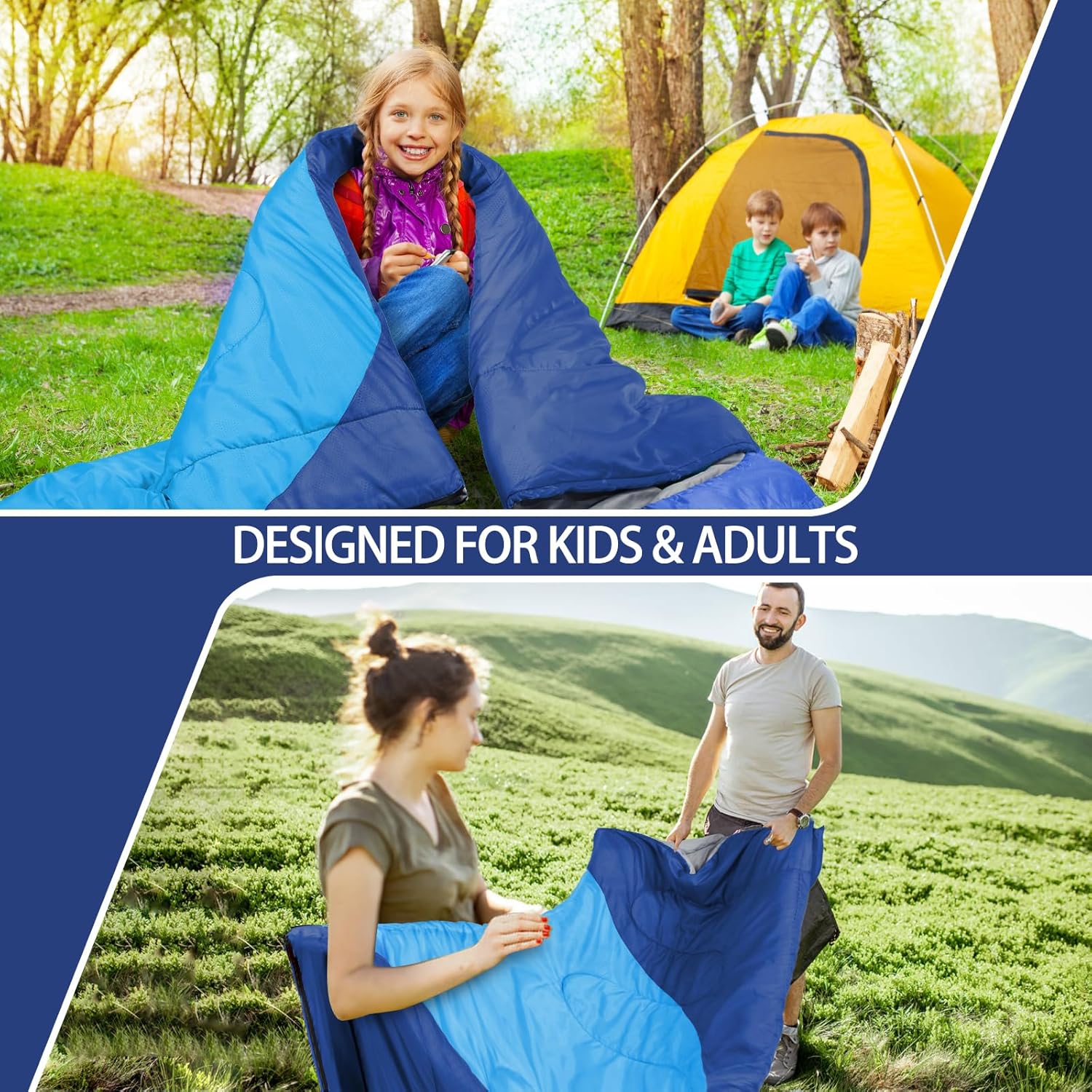 GREAT FOR ALL SEASONS – Our camping sleeping bags are designed to give you a good night’s sleep. Ideal for spring, summer, fall and winter, rated from 50°F to 68°F. Stay comfortable and warm in any condition at normal altitude. Can be used for any outdoor adventure, class camping, summer camps, couch surfing, indoor blanket and as an emergency blanket for vehicles.