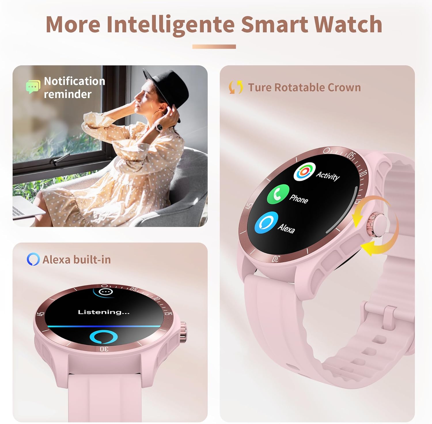 【Bluetooth Calls and Smart Notifications】 Free your hands with the women’s smartwatch. With a built-in speaker and microphones, making calls is easy, whether you’re exercising or driving. The smart watch for Android phones seamlessly receives SMS and app messages from WhatsApp, Facebook, TikTok, and more, keeping you informed during workouts and travel. Furthermore, You can also voice control Alexa-compatible smart home devices (like speakers, light). Yoever Smartwatch makes your life easier