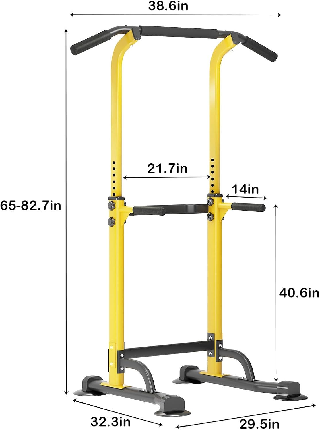 💪【Double Stability & Sturdy Construction】Our power tower owns 32.3’’ long-size H-shape base.Power tower is made of high quality steel construction and holds up to 330LBS, The Upgraded and Bigger suction cups in the bottom with more durabitily and stability.