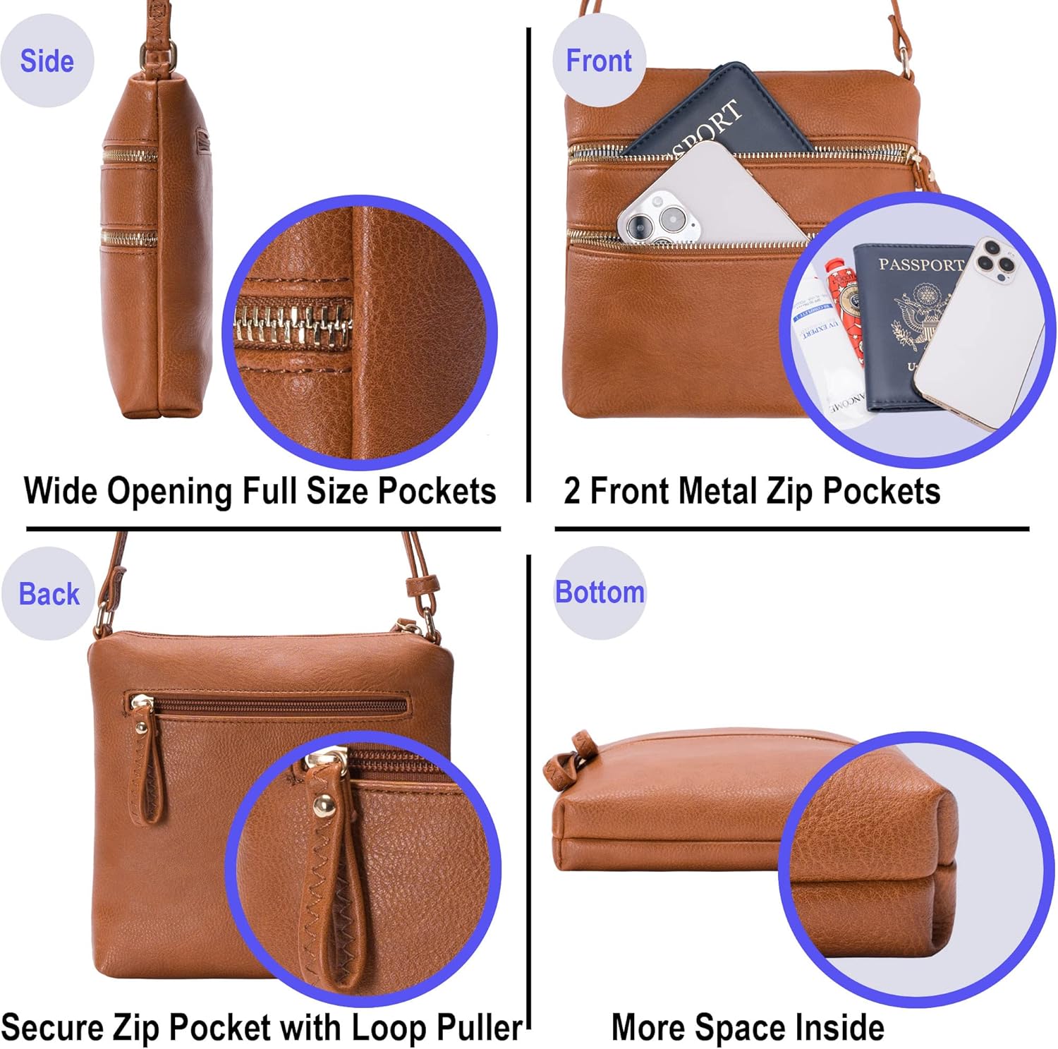 Solene Multi Zipper Pocket Crossbody Bag with Strap, Lightweight Travel bag, Daily Cell Phone Purses Messenger bag