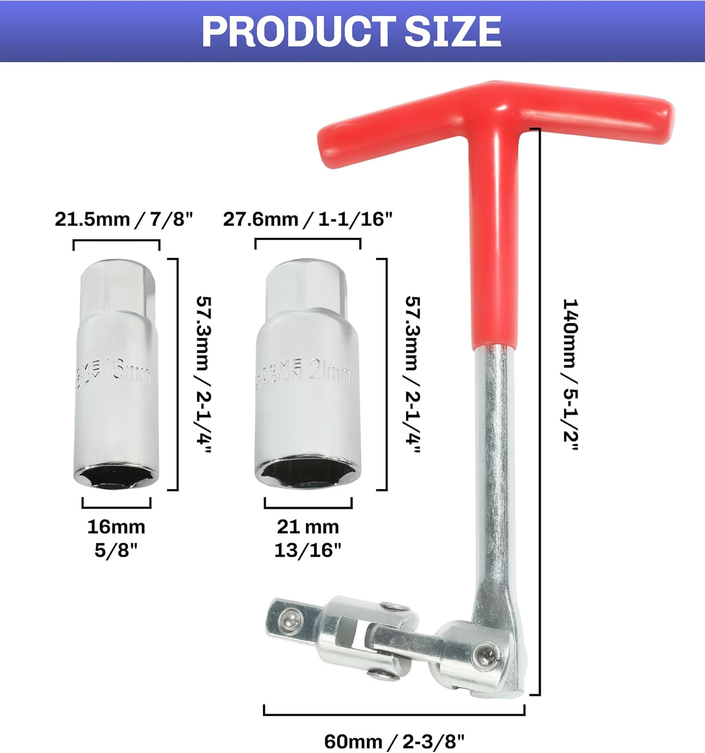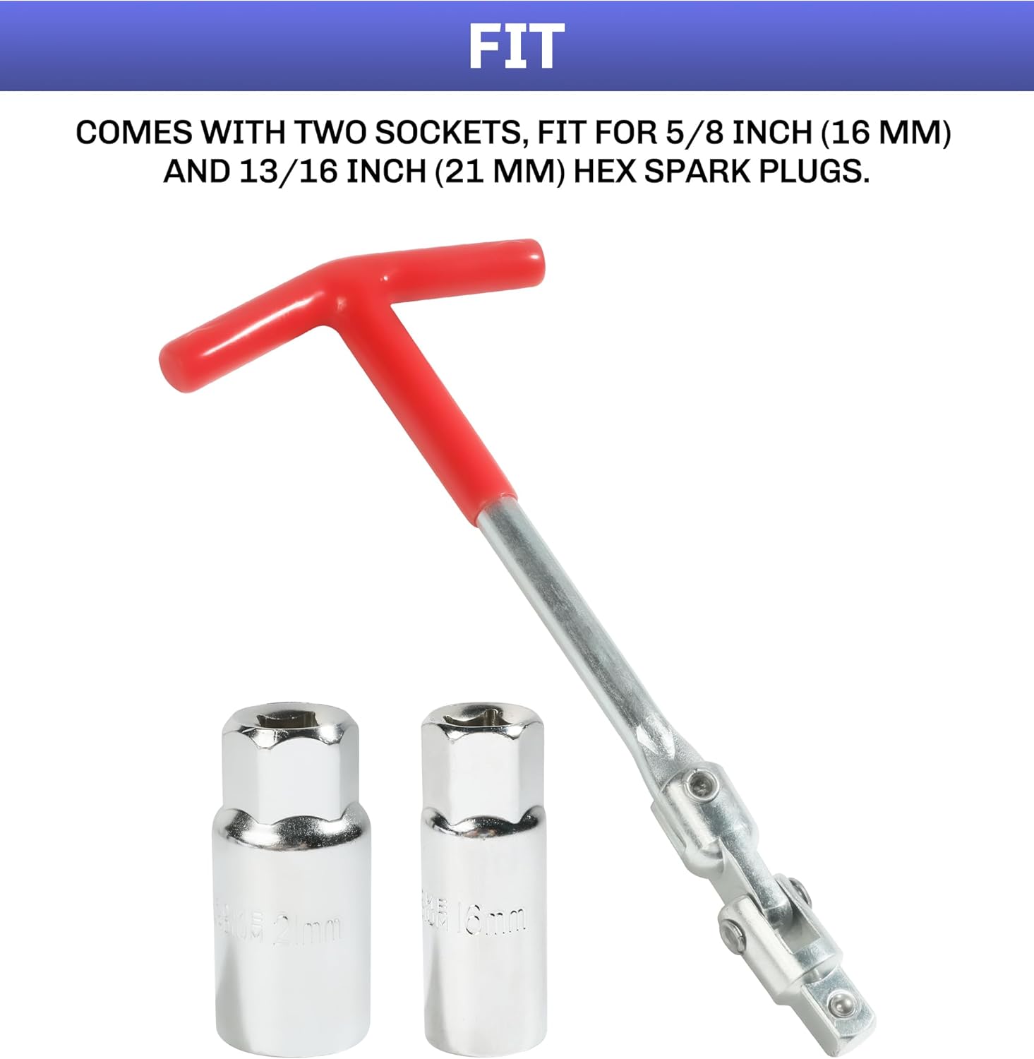 [Set Includes]The set includes one spark plug socket wrench T-shaped handle and two sockets, which can effectively secure spark plugs and minimize damage.