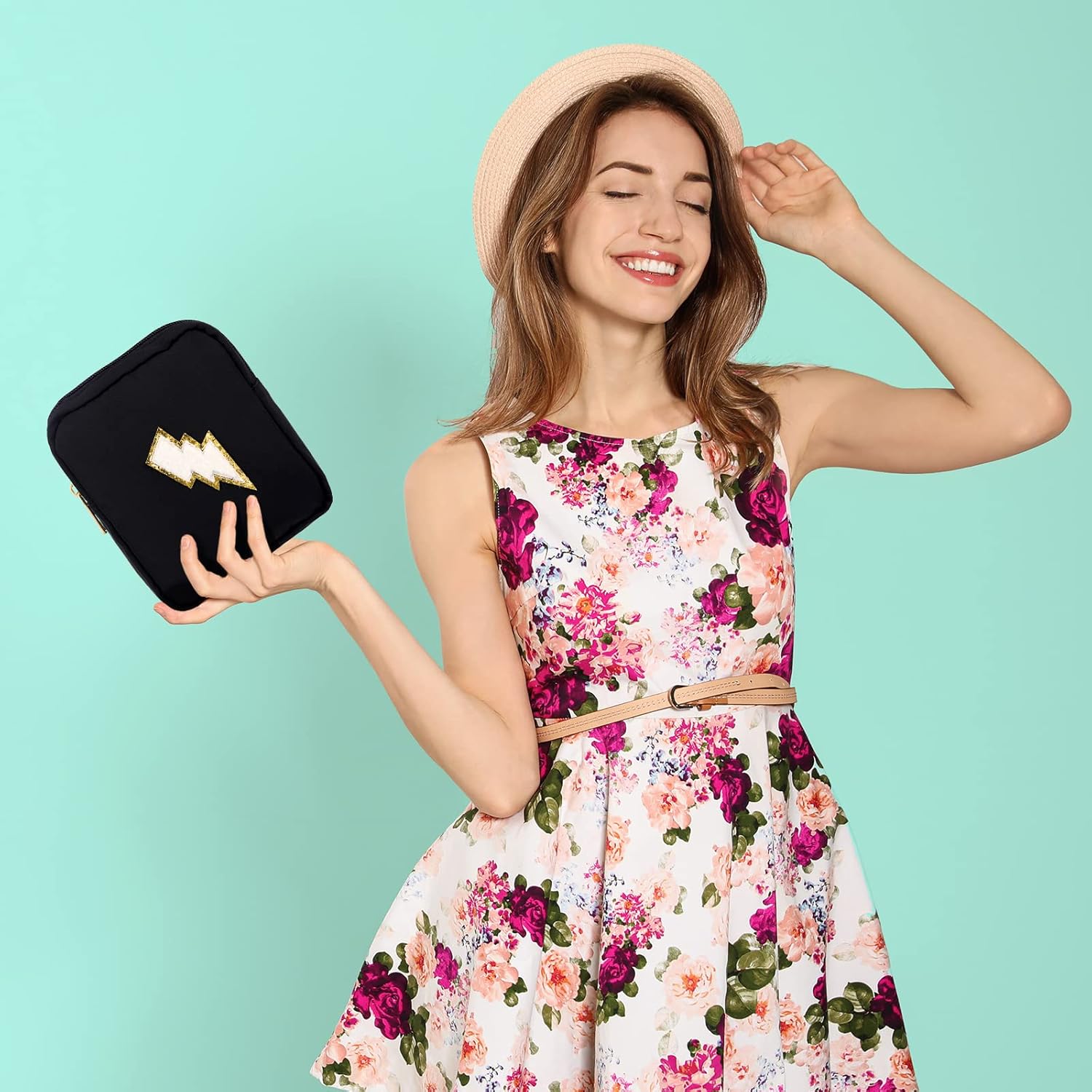 Preppy Makeup Bag Set: the package includes 4 pieces of preppy patch bags in 4 different styles with 4 different colors, namely pink, teal, black and beige, and the sufficient quantity can meet your storage needs in different seasons, ideal for daily and travel carrying