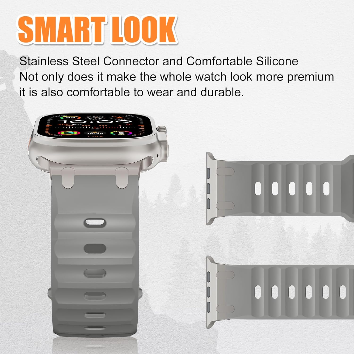 Advanced silicone material Our waterproof strap for apple watch ultra 2 bands is made of high-grade silicone, which is soft, comfortable and breathable, no irritation to the skin, waterproof and stain-proof, and quick-drying, even if you are running, hiking, climbing, cycling, traveling, or outdoors When adventurers face various extreme environments or weather, this sturdy silicone sports iwatch bands can always retain excellent performance and give you an comfortable wearing experience.