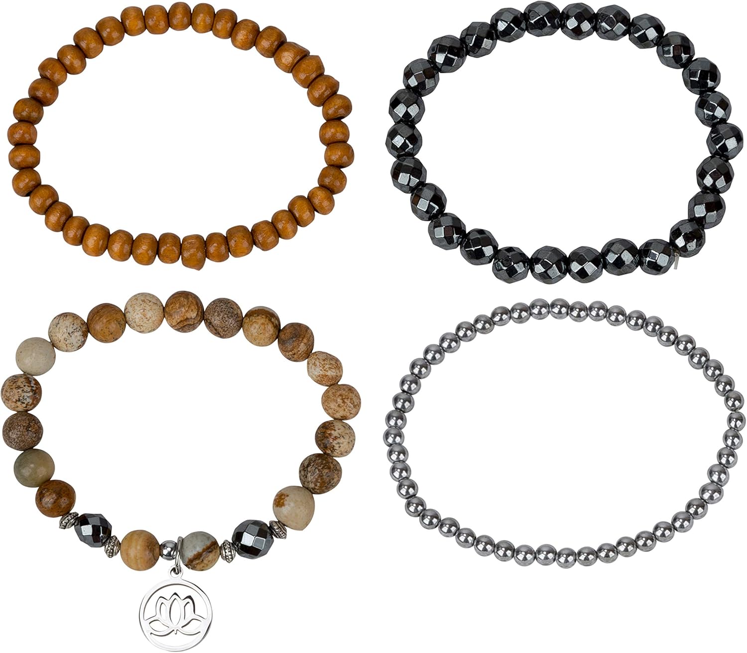 SPUNKYsoul Lotus New Beginnings Bracelet Hematite for healing Stack Bracelet Set Collection