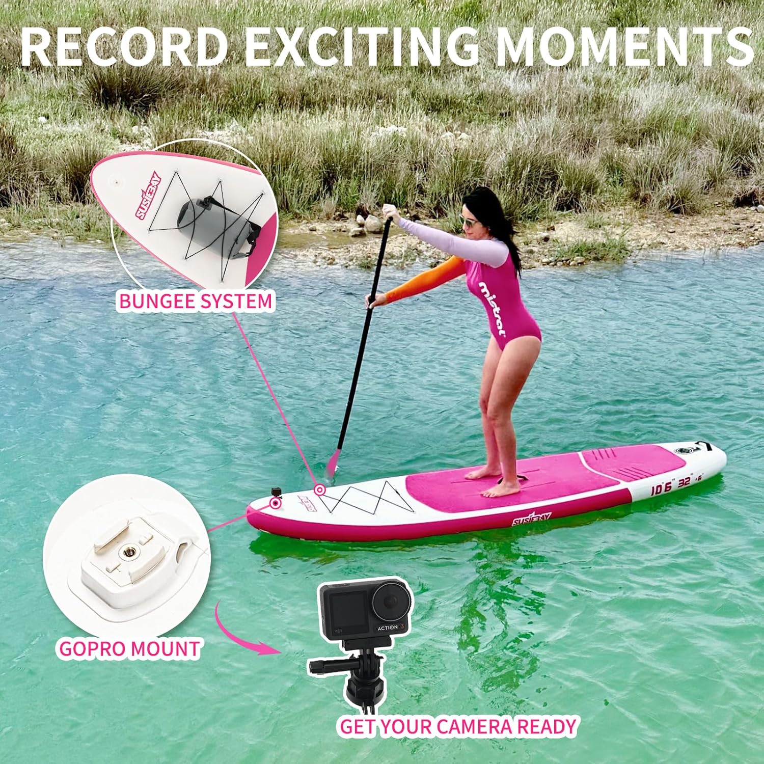 【SPORT CAMERA MOUNT】We add a Sport camera bracket mount on inflatable stand up paddle board, where you can install the action camera on the camera mount and record your wonderful moments at any time.