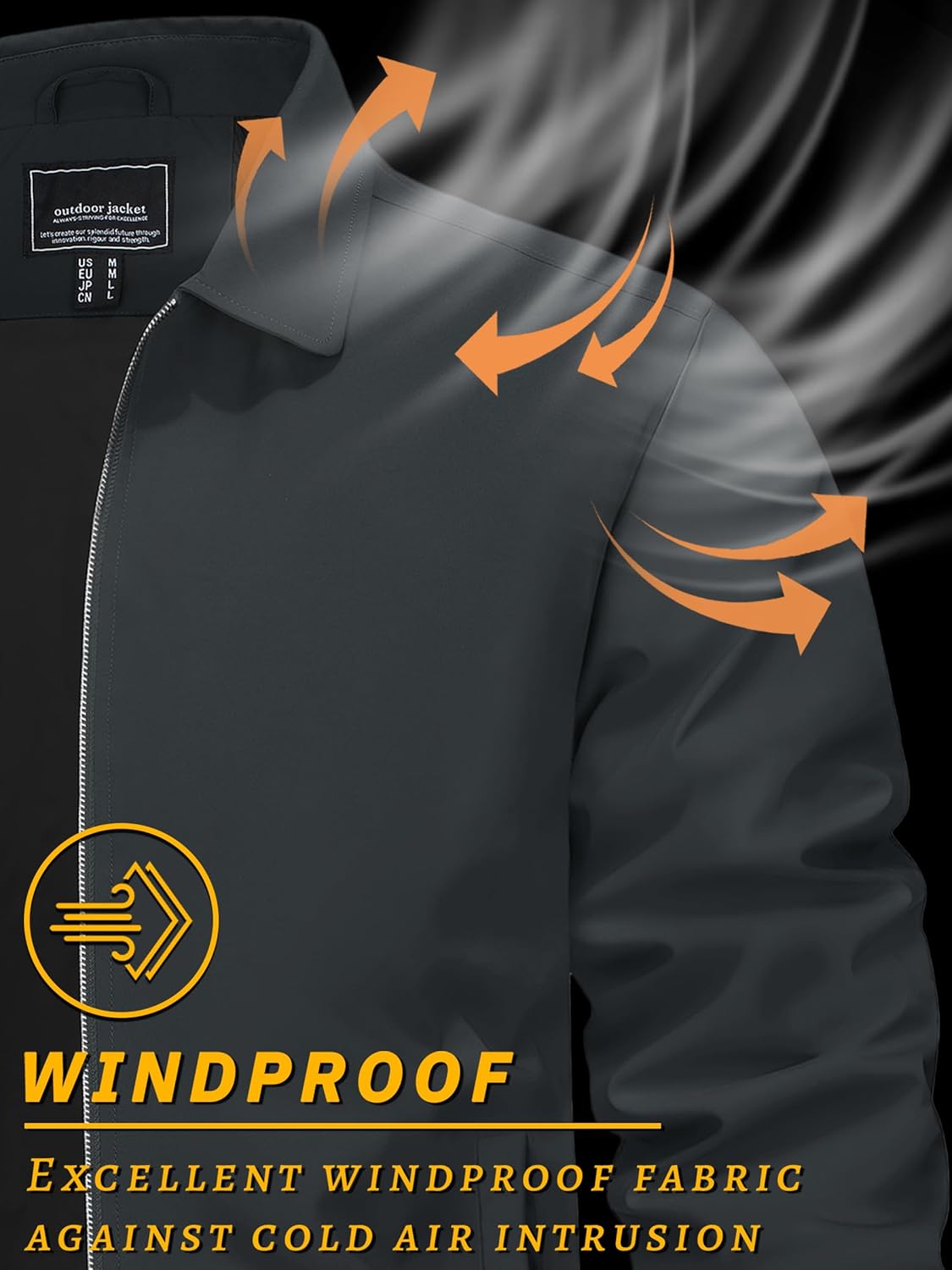 TACVASEN Mens Lightweight Windbreaker Full Zip Up Laydown Collar Jackets Light Casual Coat with Zip Pockets