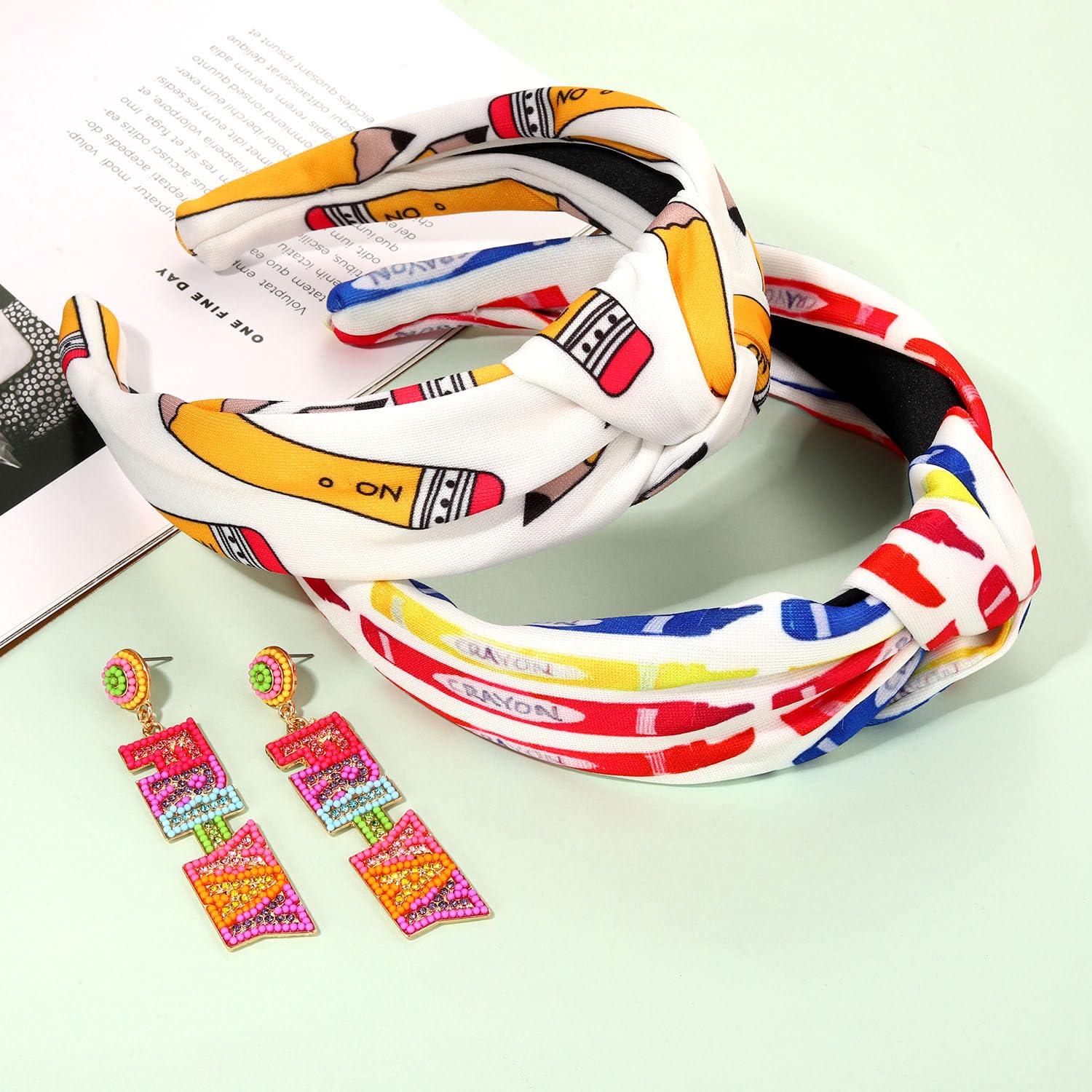✔Teacher Hair Accessory: Start off your school day look with our beautiful pencil printed knotted hairbands. Pair them with our beautifully beaded earrings to complete your look. Whether you’re heading to class or just want to add a touch of whimsy to your outfit, they are a fun way to show off your personality and your love for all things teaching
