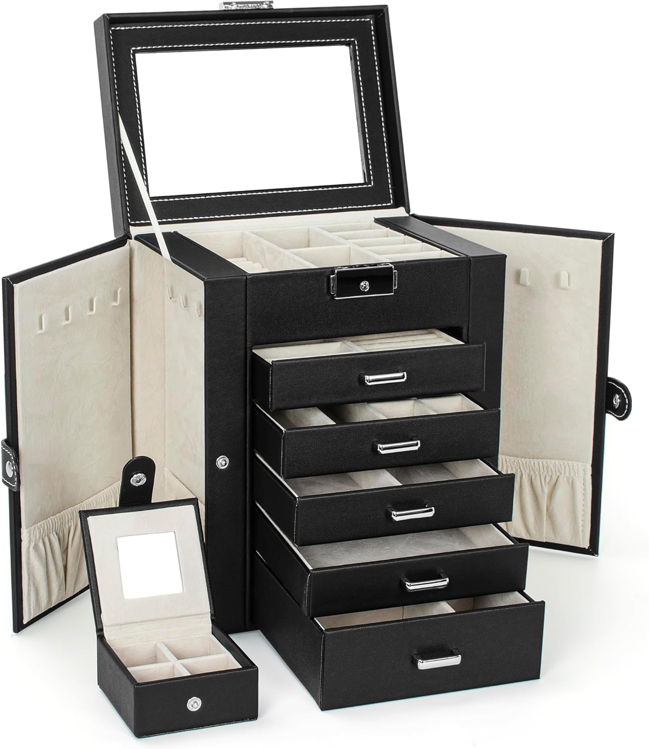 Some drawer compartments are detachable for larger jewellery, allowing you to organize them in a variety of ways.