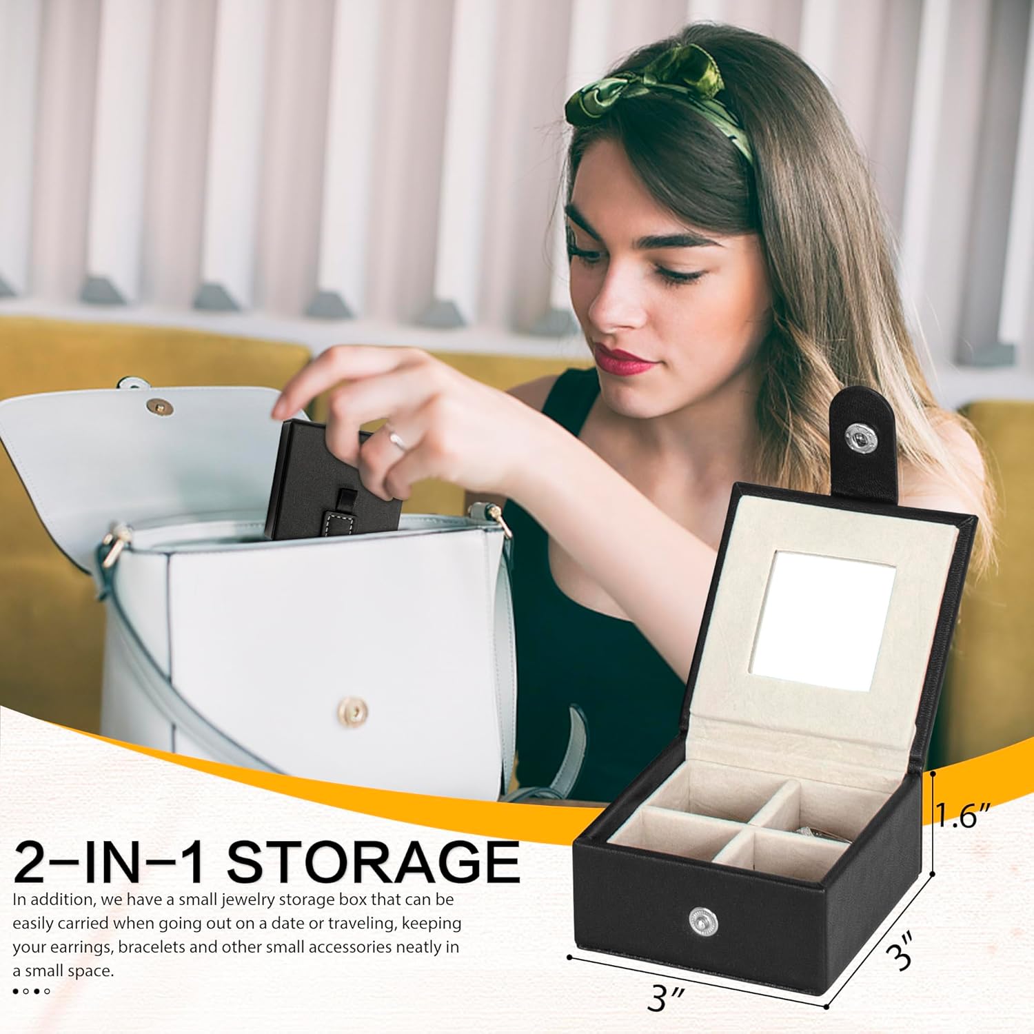 2 in 1 Storage: Comes with a small jewelry box, which can be easily carried when you go out for a date or travel, and place your earrings, bracelets and other small accessories neatly in a small space