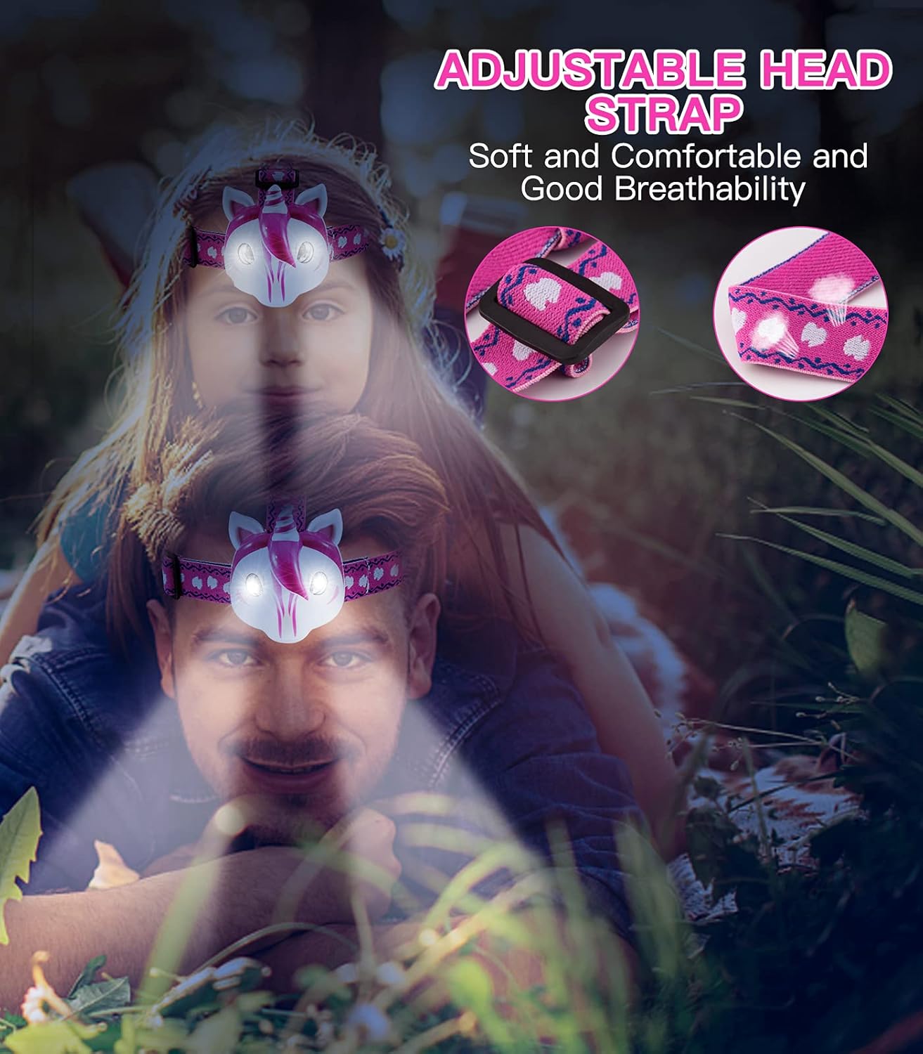 The unicorn led headlamp is perfect for parents and kids reading story before bedding. It is perfect for exploring the backyard, campground, or basement.