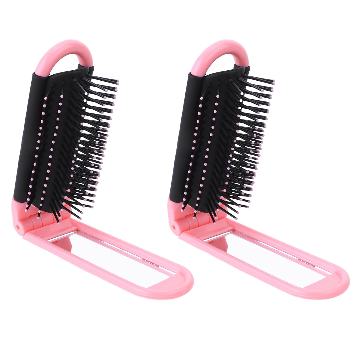 Travel Hair Care Set: 2-in-1 Folding Massage Comb with Mirror, Compact Purse Brush for Wet & Dry Hair