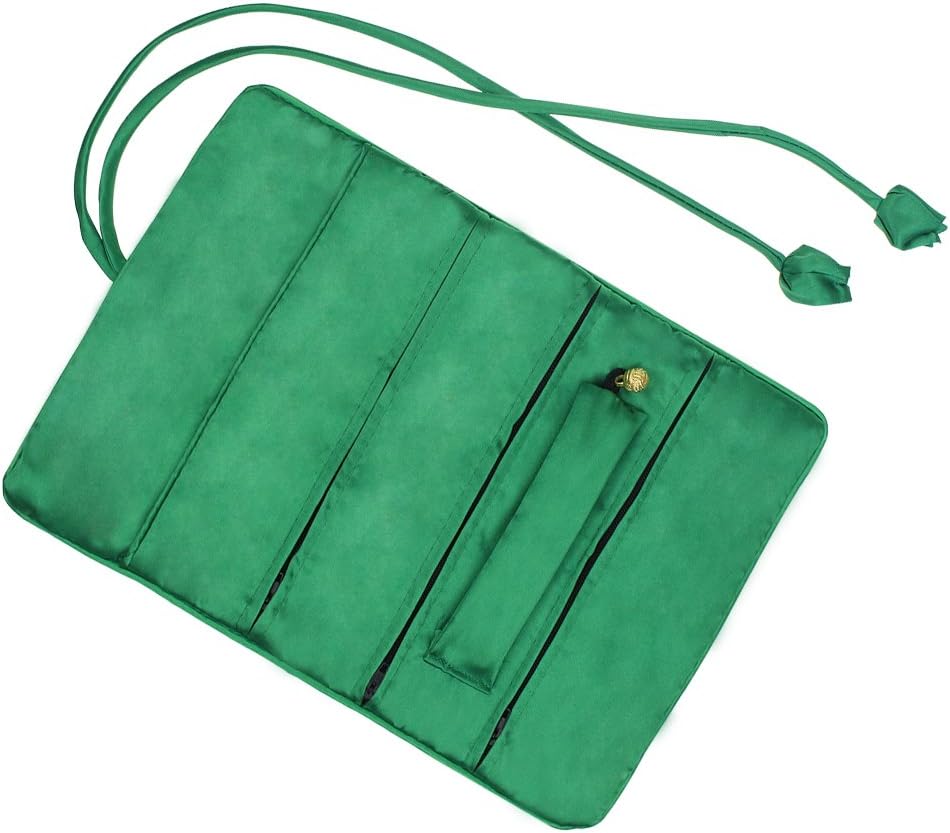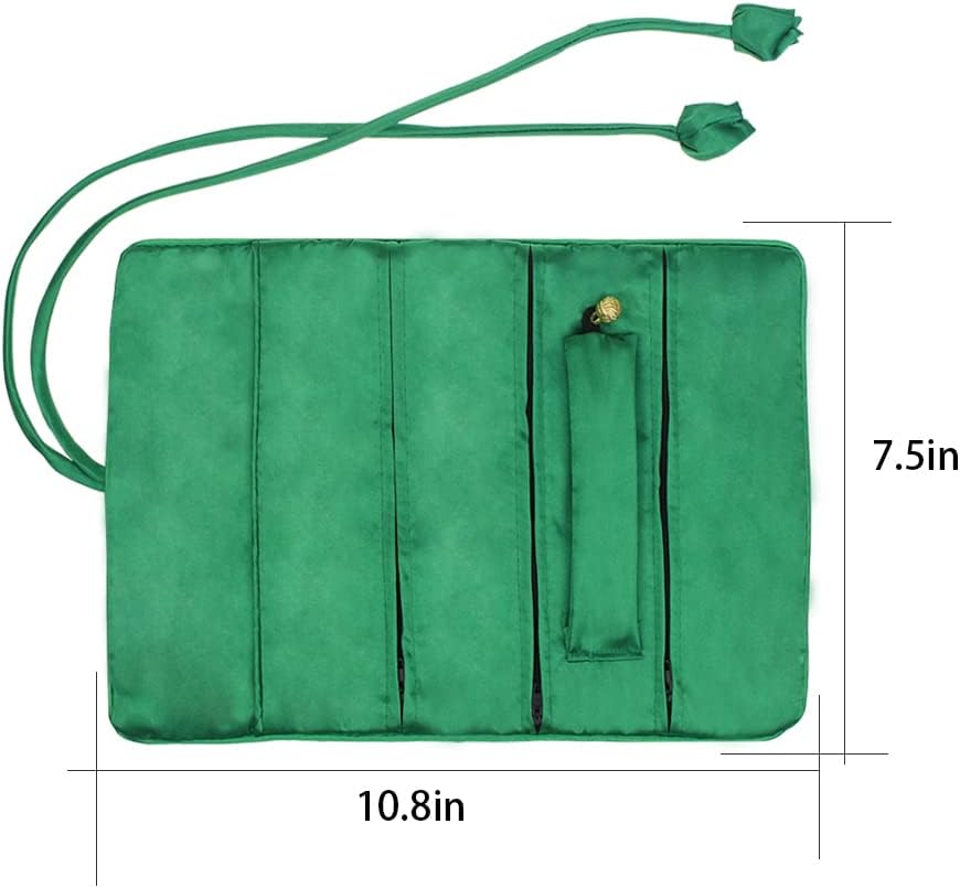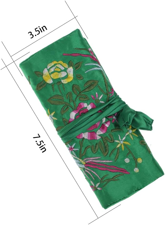 Travel Silk Brocade Embroidery Jewelry Organizer Roll Bag,Jewelry Pouch Foldable,Retro Jewelry Organizer Rolling Bag,Jewelry Roll Case,Jewelry Storage Bag.Dark Green.