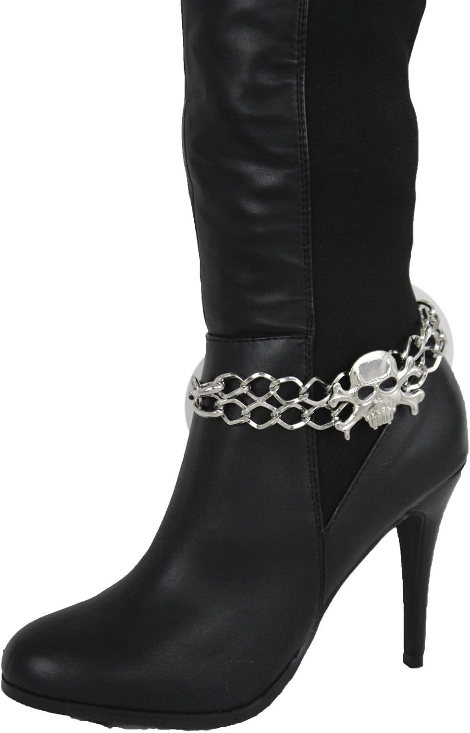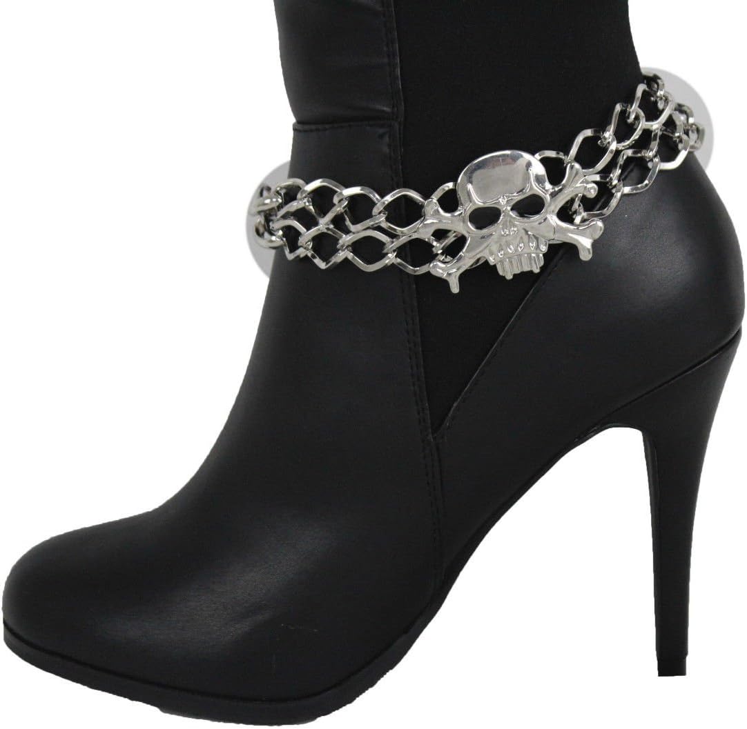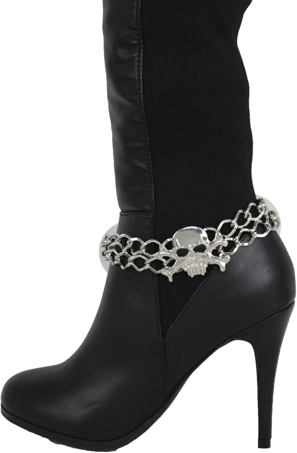 Trendy Fashion Jewelry TFJ Women Western Boot Chain Metal Bling Bracelet Skeleton Skull Anklet High Heel Shoe Charm Silver