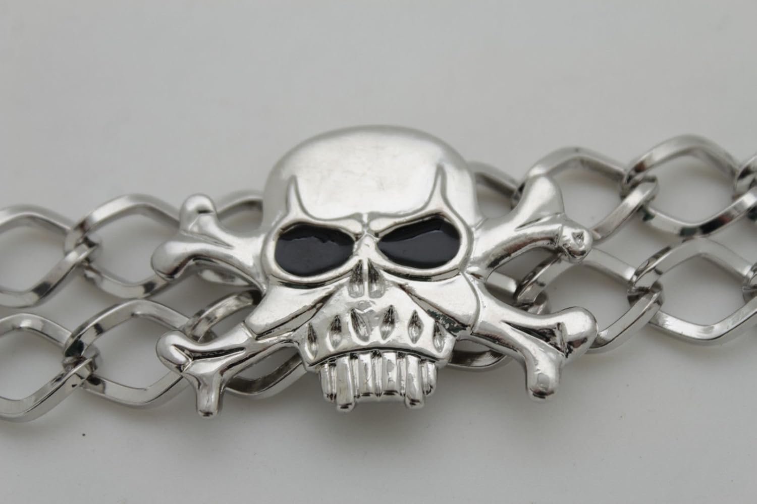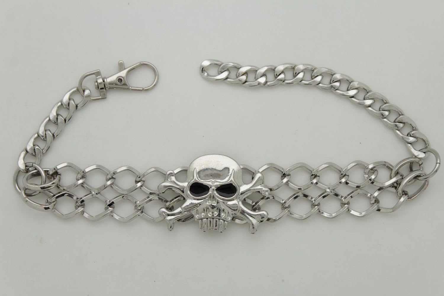 Western Bling Sexy Fashion Single (One Side) Boot Strap Chain Bracelet High Heel Unique Special Piece – Metal chain strand charm – Big skull 2 strands urban trendy western style charm Made in the USA If you want to make them smaller or bigger please let us know (we will add or take of some of the extension chain) You are buying a single strap bracelet (one side): Condition: Brand new Color: Silver Size: One size 9″-14.5″ (length)