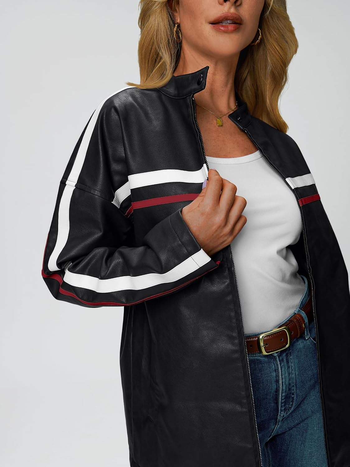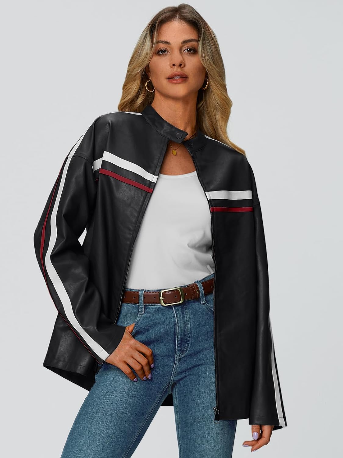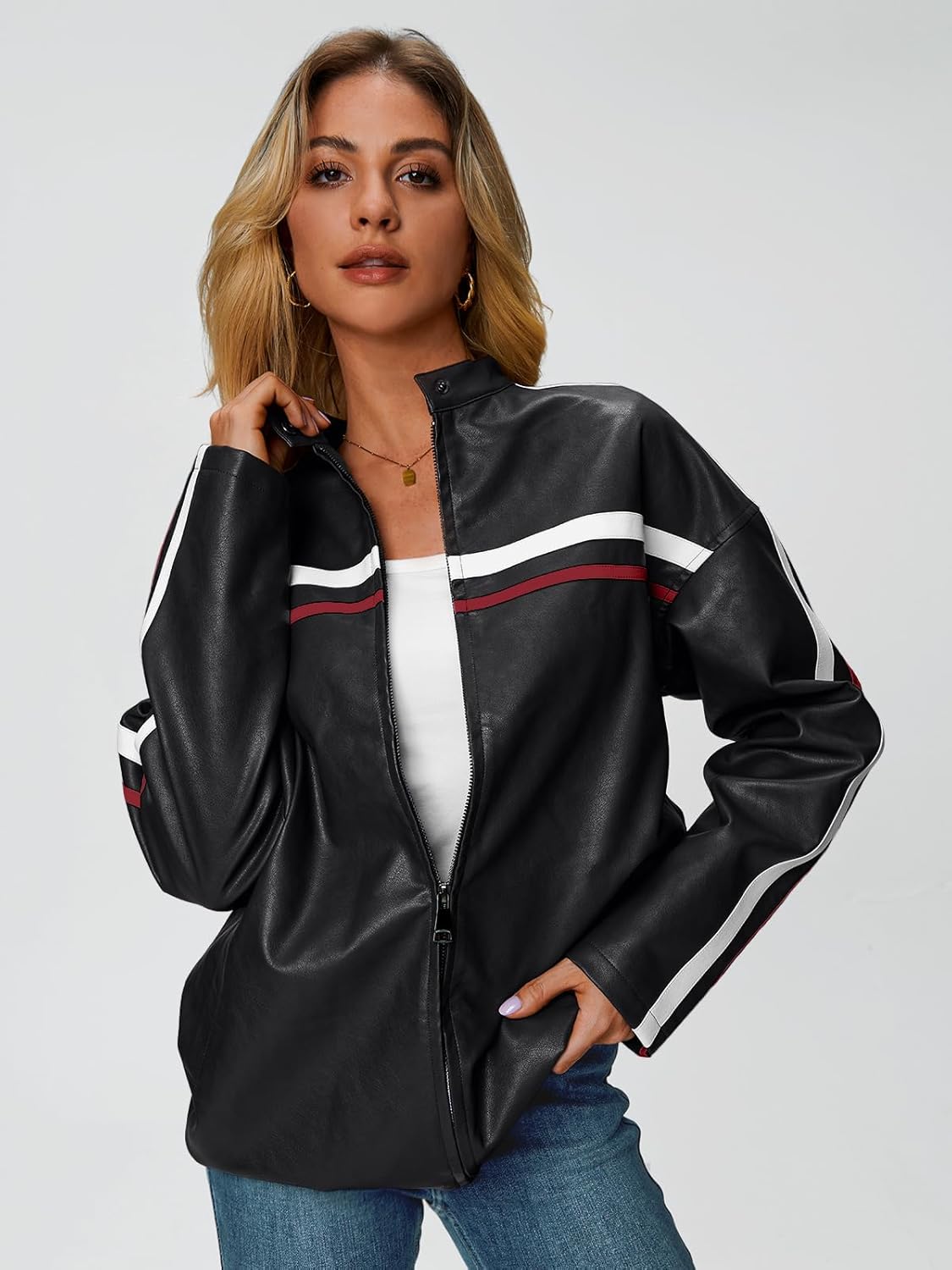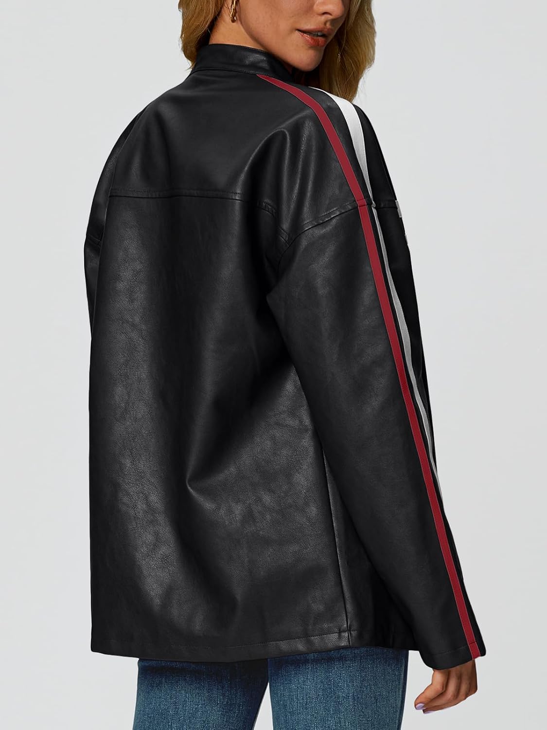 Trendy Queen Womens Faux Leather Jackets Bomber Oversized Motorcycle Fall Jackets Collar Zip Up Coats Y2k Outfits