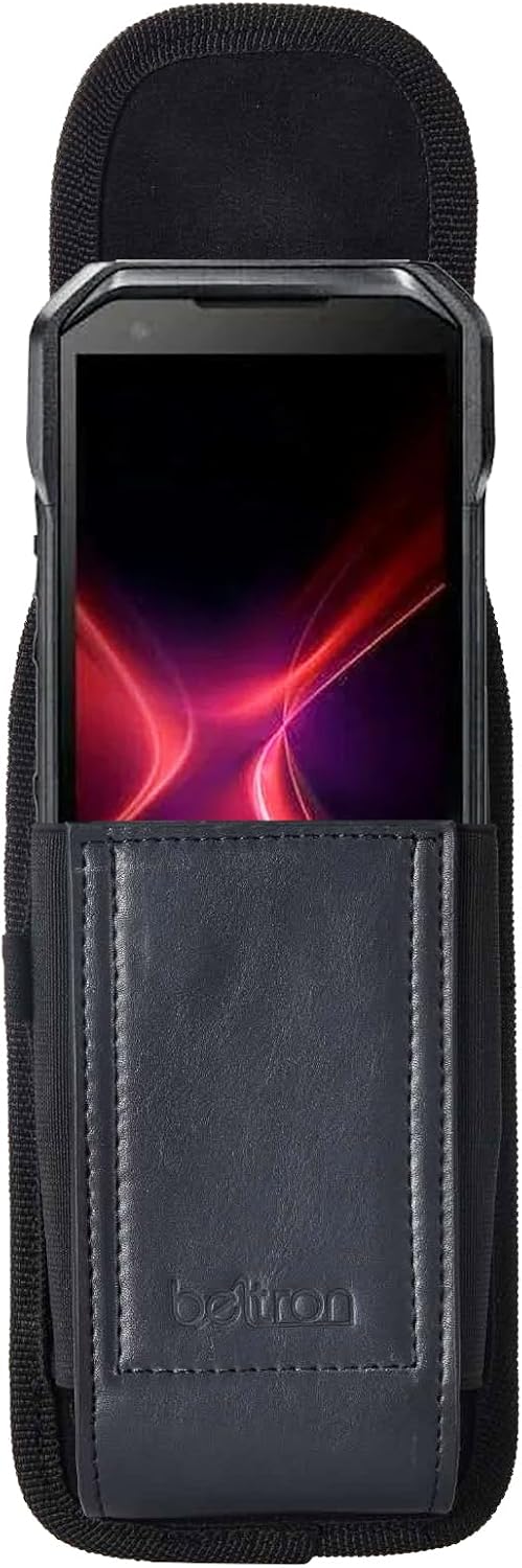 Keep your valuable smartphone secure and readily accessible. The BELTRON heavy duty leather pouch is made with high-quality dirt resistant Genuine Cowhide Leather and lined with soft felt for interior added protection against scratches. Featuring a secured belt loop supporting belts up to 2.25”, sturdy metal belt clip & dual magnet closure for quick release and secure closure. Compatible with: Sonim XP10 XP9900 / Kyocera DuraForce Pro 3, Kyocera DuraForce Ultra 5G UW, iPhone 13 Pro Max, iPhone 14 Plus, iPhone 14 Pro Max, iPhone 15 Plus, iPhone 15 Pro Max, Samsung Galaxy Z Fold 5, Samsung Galaxy Z Fold 4, Samsung Galaxy S22 Plus, Samsung Galaxy S23 Plus, Samsung Galaxy S22 Ultra, Samsung Galaxy S23 Ultra & most larger smart phones (Case Compatible).